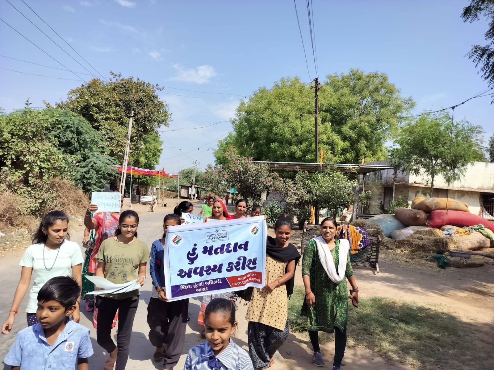 આણંદ જિલ્લામાં લોકસભા સામાન્ય ચૂંટણી-2024 અને 108 ખંભાત વિધાનસભા મતવિસ્તારની પેટા ચૂંટણીમાં જિલ્લાના મહત્તમ નાગરિકો લોકશાહીના મહાપર્વમાં મતદાન કરે તે માટે જિલ્લા ચૂંટણી અધિકારી પ્રવીણ ચૌધરીના માર્ગદર્શન હેઠળ આણંદ જિલ્લામાં સ્વીપ કાર્યક્રમ અંતર્ગત મતદાન જાગૃતિના વિવિધ કાર્યક્રમો હાથ ધરવામાં આવી રહ્યા છે.
