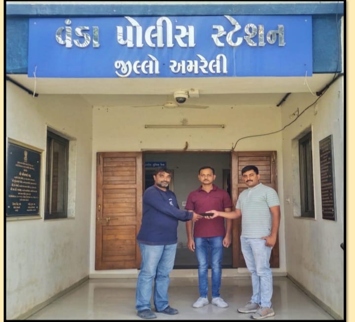 અમરેલી પોલીસ અધિક્ષક હિમકર સિંહ સાહેબ તથા સાવરકુંડલા વિભાગ, સાવરકુંડલા મદદનીશ પોલીસ અધિક્ષક શ્રી વલય વૈધ સાહેબ દ્વારા મોબાઇલ ચોરી તથા અરજદાર દ્વારા ભુલથી પડી ગયેલ મોબાઇલ શોધી કાઢી પરત સોપવા જરૂરી કાર્યવાહી કરવા સુચના તથા માર્ગદર્શન આપેલ હોય જે અન્વયે વંડા પો.સ્ટે પો.સબ.ઇન્સ કે.એમ.મોરીની સુચના અને માર્ગદર્શન હેઠળ વંડા પોલીસ ટીમ ફીફાદ ગામે અરજદાર ગારીયાધાર થી ફીફાદ ગામે આવતા હોય ત્યારે ફીફાદ ગામ પાસે રસ્તા મા પોતાનો મોબાઇલ પડી ગયેલ હોય જેની જાણ વંડા પોલીસ સ્ટેશન ખાતે કરેલ હોય જેથી અરજદારની રજુઆત આધારે હયુમનસોર્સ તથા સી.સી.ટી.વી કેમરાની મદદથી મોબાઇલ શોધી કાઢી અરજદારને પરત સોપી આપેલ આ કામગીરી વંડા પોસ્ટે ના પો.સબ.ઇન્સ કે.એમ.મોરી સા ના માર્ગદર્શન નીચે હેડ કોન્સ સી.એમ.ડાભી તથા હેડ.કોન્સ ડી.બી નિમાવત તથા હેડ.કોન્સ એમ.વાય.જાડેજા તથા પો.કોન્સ યુવરાજસિંહ ગોહીલ દ્વારા કરવામાં આવેલ છે  એમ અમીતગીરી ગોસ્વામી દ્વારા એક યાદીમાં જણાવવામાં આવ્યું હતું