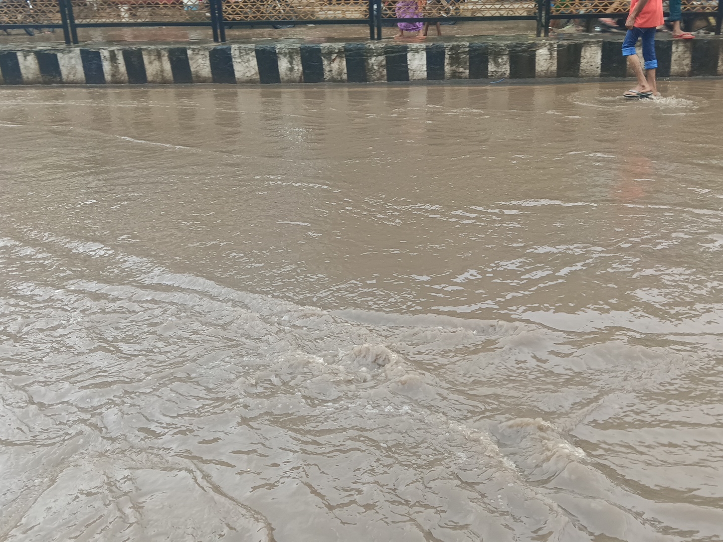ભારે વરસાદ વરસતા રોડ રસ્તાઓ પર નદીની જેમ પાણી વેહતું થયું; અડધો કલાક વરસાદ પડતા સમગ્ર અંબાજી પાણી પાણી