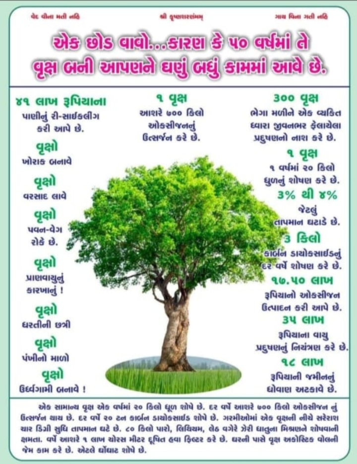 .સોમનાથ ભાવનગર નેશનલ હાઈવે રોડ ઉપર તથા મંદિર ગામના પાદર તથા સ્મશાન તથા સરકારી પડતર જમીન વગેરેમાં વૃક્ષો વાવવા સામાજિક કાર્યકર જાદવભાઈ ચુડાસમા દ્વારા લોકોને અપીલ કરવામાં આવી છે તેઓ જણાવ્યું હતું કે પાણી વગર માણસ કલાક સુધી જીવી શકે છે પરંતુ પ્રાણ વાયુ વગર માણસ મિનિટ પણ જીવી શકતો નથી એ પ્રાણ વાયુ આપણને આપે છે કોણ? આવો કોઈ દિવસ આપણે વિચાર કર્યો છે ખરો? એ વૃક્ષ જ આપે છે અને એ જ વૃક્ષનું આપણે નિકંદન કાઢી નાખ્યું છે તો આવો ફરીથી આપણા સહિયારા પુરુષાર્થથી વૃક્ષો આવીને તેનું જતન કરીએ આજે પડતી અસહ્ય ગરમી તાપમાનનો પારો 45 થી 50 ડિગ્રીએ પહોંચી ગયો છે ત્યારે માણસ પશુ પક્ષી તમામ ત્રાહિમામ પોકારી ગયા છે ત્યારે જો 50 ડિગ્રીમાં પણ જો વૃક્ષ નીચે તમે બેસો એટલે તમને એ શીતળ છાંયડો આપે છે અસહ્ય ગરમીમાં તમને રાહત આપે છે ઠંડક આપે છે શાંતિ આપે ત્યારે તાપમાન તો છે જ પણ વૃક્ષ નીચે આવવાથી જો તાપમાનથી બચી શકાતું હોય તો આ વૃક્ષ માં ૫૦ ડિગ્રી તાપમાન સહન કરીને જીવ માત્ર ને ઠંડક પ્રદાન કરે આ વૃક્ષ પરોપકારનું કામ કરે છે આપણને પ્રાણ વાયુ આપે ફળ આપે ફૂલ આપે લાકડું આપે સાથે સાથે કાર્બન ડાયોક્સાઇડ વાતાવરણમાંથી શોષીને વાતાવરણને શુદ્ધિકરણ કરે માનવ પશુ-પક્ષી જીવજંતુ તમામ સજીવને ફાયદાકારક વૃક્ષ છે તો આ વૃક્ષ આપણને ડગલેને પગલે જો કામ લાગતું હોય પ્રાણજીવન આપે તો ચાલો આપણે વૃક્ષો વાવીને તેમનુ જતન કરીએ હાલ ના સમયમાં આપણે 50 હજાર નું એસી લેશુ પરંતુ 50 રૂપિયાનું વૃક્ષ નહીં વાવીએ પાંચ વૃક્ષ નહીં વાવીએ એસી તો માત્ર આપણા અને આપણા કુટુંબ પૂરતું જ સીમિત રહેશે અને ઠંડક માત્ર આપે છે એ પણ લાઈટ બિલ વધારીને જ્યારે વૃક્ષ તો તમામ માનવ જીવ જંતુ પશુ પક્ષી ને ઠંડક અને શીતળ શાંતિ આપે છે તો કયું શ્રેષ્ઠ છે એ આપણે વિચારવું જોઈએ તો આજે સંકલ્પ લઈએ ચોમાસુ નજીક આવે છે દરેક ભાઈ બહેનો પાંચ પાંચ વૃક્ષ વાવી તેમનુ જતન કરીએ અને પ્રકૃતિ પ્રેમી બની અને પરોપકારનું કામ કરીએ અને આપણે અને આપણી પેઢીને શુદ્ધ ઓક્સિજન માટે સંકલ્પિત થઈએ જે ઓક્સિજન માટે કોરોના મહામારીમાં રૂપિયા દેતા ઓક્સિજન નહોતું મળતું તે મફતમાં વૃક્ષ આપણને ઓક્સિજન આપે છે ને તો આવો સંકલ્પિત થઈને સહિયારો પુરુષાર્થ કરીએ એક સમસ્યા ની આપને વાત કરવી છે