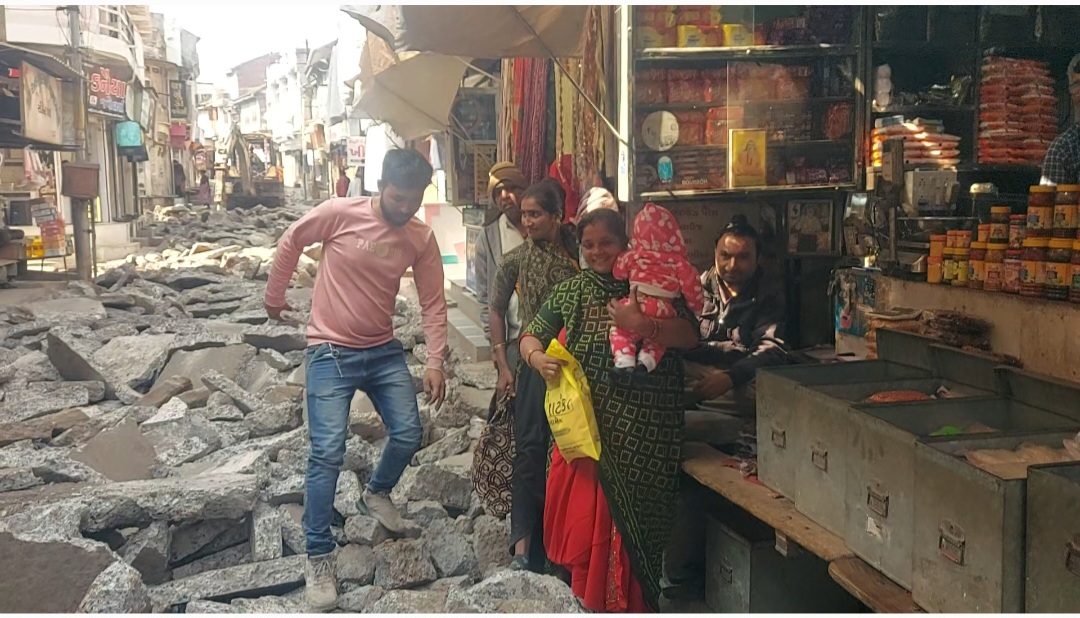 આ વિસ્તારમાં ખરીદી માટે આવતાં રડ્યાખડ્યા ગ્રાહકો પણ આ રોડ પર ચાલતાં ખૂબ મુશ્કેલી અનુભવતાં જોવા મળેલ. હાલ તો આ રોડ પર ચાલવું એટલે જણે બે આધાર પર ટિંગાડેલ ઉંચા દોરડા પર ચાલવા જેવું જ છે..!! પેલાં નટ બજાણિયાના ખેલ સમું…! ખૂબ જ જરૂરી હોય તેવા ગ્રાહકો જ આ બઝારમાં હાલ નીકળતાં જોવા મળે છે. નગરપાલિકા દ્વારા વહેલી તકે આ રોડ તૈયાર થાય એ માટે યુધ્ધના ધોરણે રાત દિવસ કામ ચાલે એમ વેપારી સમાજ ઈચ્છે છે.