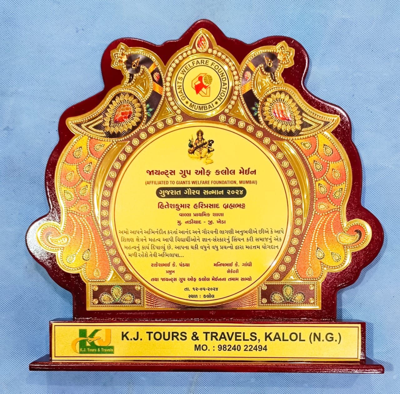 જાયન્ટ ગ્રુપ ઓફ કલોલ મેઈન તરફથી ગાંધીનગર જિલ્લાના કલોલ ખાતે રાજ્યના શ્રેષ્ઠ શિક્ષકોને સન્માનવાનો કાર્યક્રમ “ગુજરાત ગૌરવ સન્માન ૨૦૨૪” યોજાઈ ગયો. જેમાં ઉ.મા.શિક્ષણ બોર્ડ ગાંધીનગરના મદદનીશ સચિવ પુલકિત જોષી,ભાવનગરના કેળવણીકાર તખુભાઈ સાડસુર અને શાસ્ત્રીસ્વામી પ્રેમ સ્વરૂપદાસસ્વામી તથા જાયન્ટ્સ ગૃપ ઓફ કલોલ સદસ્યો ઉપસ્થિત રહ્યા હતા.જેઓના હસ્તે ખેડાની નડિયાદ તાલુકાની વાલ્લા પ્રાથમિક શાળાના ગાંધીવાદી શિક્ષક હિતેશકુમાર હરિપ્રસાદ બ્રહ્મભટ્ટને શ્રેષ્ઠ શિક્ષકનું “ગુજરાત ગૌરવ સન્માન ” અર્પણ કરાયું.ખાસ ઉલ્લેખનીય છે કે,અનેક સંઘર્ષો વેઠી, પ્રચંડ પુરુષાર્થ કરી સફળતાના ઉચ્ચ શિખરે પહોંચનાર આ ગાંધીવાદી શિક્ષક ખેડા જિલ્લાના શિક્ષણ જગત માટે એક પ્રેરણા સ્ત્રોત બન્યા છે.