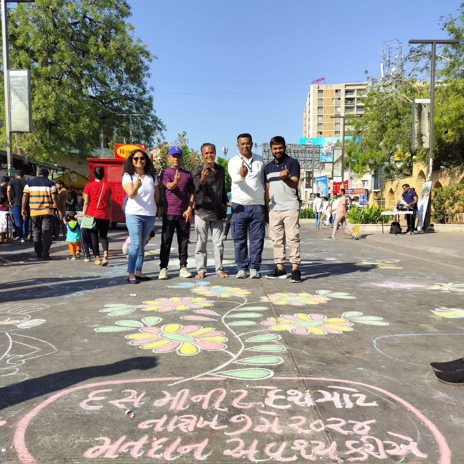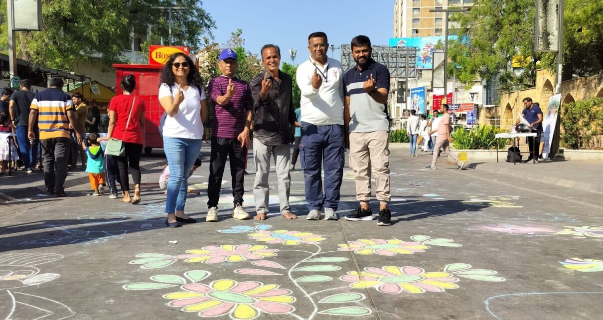 આ પ્રસંગે યુવાનોએ રોડ પર ‘મતદાન જાગૃતિ’નો સંદેશ આપતી વિવિધ સુંદર રંગોળી કંડારી હતી, જે આકર્ષણનું કેન્દ્ર બની હતી. યુવાનોએ સંગીતના તાલ પર નૃત્ય પણ કર્યું હતું.