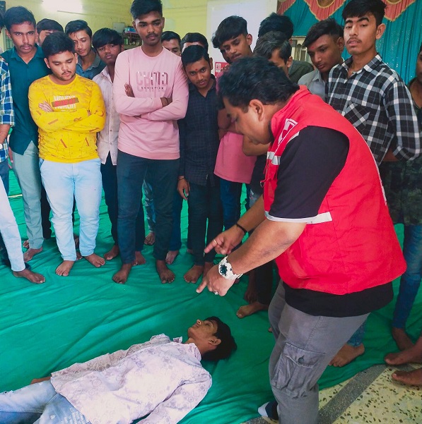 રેડક્રોસ સોસાયટી, સાવરકુંડલાના સેક્રેટરી મેહુલભાઈ વ્યાસ દ્વારા વિદ્યાર્થીઓને પ્રાથમિક સારવાર વિશે માર્ગદર્શન કરવામાં આવ્યું અને વિડીયો અને પ્રેક્ટીકલ પ્રયોગ દ્વારા RECOVERY POSITION તથા CPRની તાલીમ આપવામાં આવી. કોઈ ક્રીટીકલ પરિસ્થિતિમાં ફસાયેલા વ્યક્તિનો જીવ બચાવવા માટેની પ્રક્રિયાની સમજણ આપવામાં આવી.