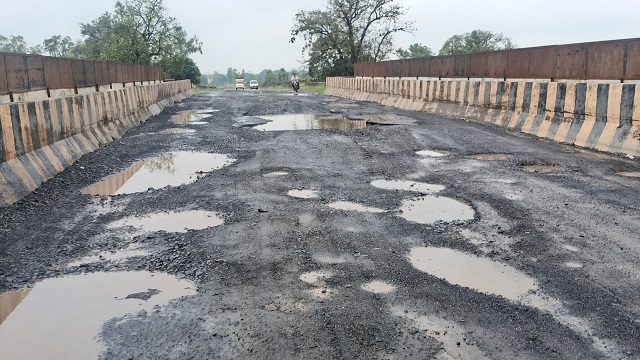 બ્રિજ પર પડેલા મોટા ભૂવા અને મોટા ખાડા વાહન ચાલકો માટે આફતરૂપ બન્યા.