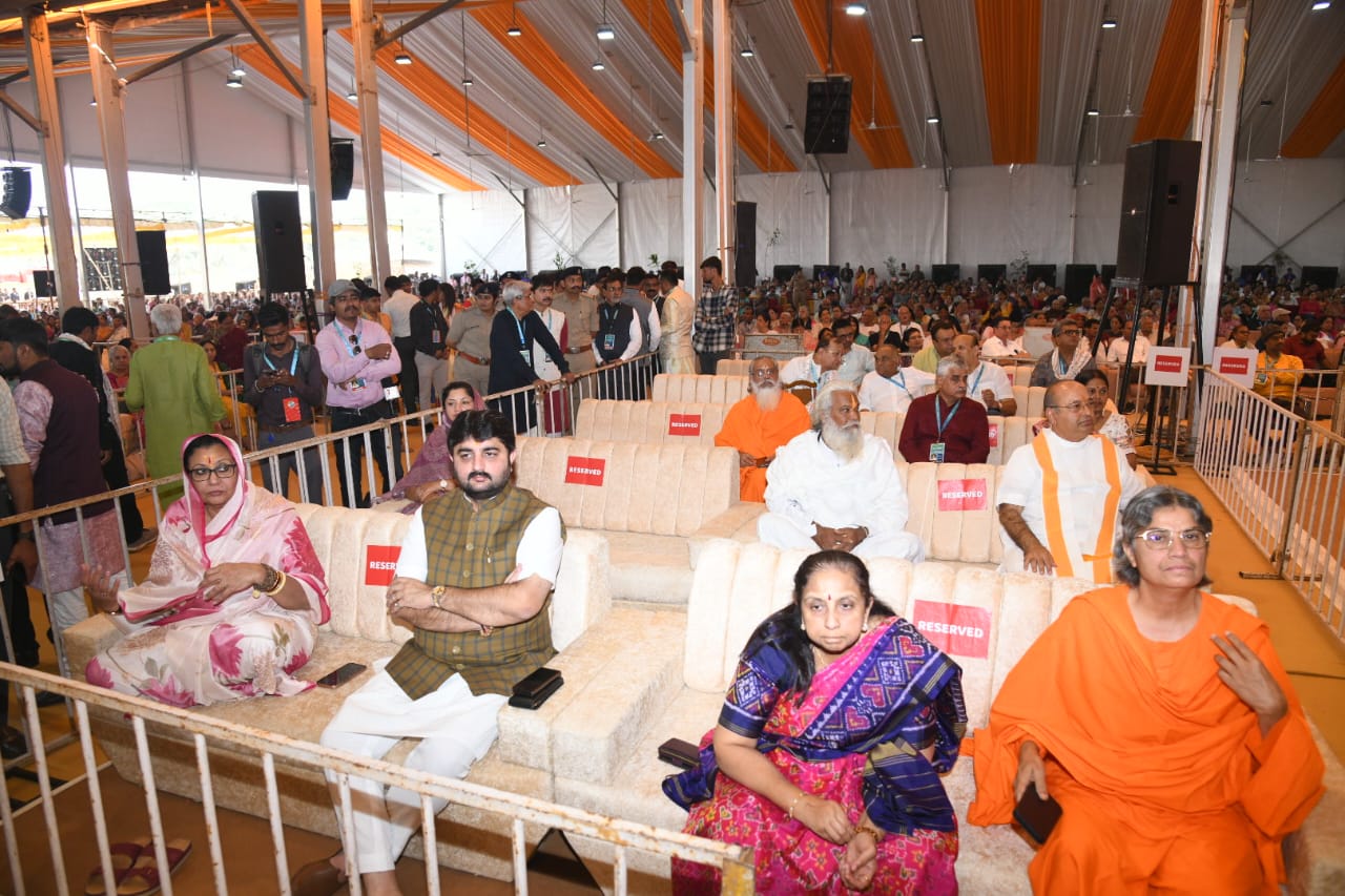 કાર્યક્રમમાં મેયર શ્રી નયનાબેન પેઢડિયા, પૂર્વ મુખ્યમંત્રી શ્રી વિજયભાઈ રૂપાણી, ધારાસભ્ય શ્રી દર્શિતાબેન શાહ, પૂર્વ સાંસદ શ્રી મોહનભાઈ કુંડારીયા, કલેકટર શ્રી પ્રભવ જોશી, પ્રાંત અધિકારીશ્રી વિમલ ચક્રવર્તી, શ્રી ચાંદની પરમાર, સંતો મહંતો શ્રી આચાર્ય ડો. લોકેશ સ્વામી, સ્વામી કારશાણી ગુરુ શરમાનંદજી મહારાજ, પાળીયાદના શ્રી નિર્મળા બા તથા ભયલુ બાપુ, સાધવી શ્રી ધ્યાનાનંદજી, અગ્રણીઓ સર્વે શ્રી ધનસુખભાઇ ભંડેરી, ડો. વલ્લભભાઈ કથીરિયા, ડી.સી પી. શ્રી જગદીશ બાંગરવા, સહીત અગ્રણીઓ અને વિશાળ સંખ્યામાં શ્રોતાગણ ઉપસ્થિત રહ્યો હતો.