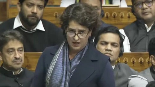 વાયનાડથી કોંગ્રેસના સાંસદ પ્રિયંકા ગાંધી લોકસભામાં તેમનું પ્રથમ ભાષણ આપ્યુ. આ દરમિયાન તેમણે સરકારને ઘેરવાની એક પણ તક ન છોડી. પ્રિયંકા ગાંધીએ કહ્યું કે આપણા દેશની હજારો વર્ષ જૂની પરંપરા સંવાદ અને ચર્ચાની રહી છે. ચર્ચા અને સંવાદની જૂની સંસ્કૃતિ છે. વિવિધ ધર્મોમાં પણ ચર્ચા અને સંવાદની સંસ્કૃતિ રહી છે. પ્રિયંકા ગાંધીએ કહ્યું કે આપણાં કરોડો દેશવાસીઓના સંઘર્ષમાં, તેમના અધિકારોને માન્યતા આપવા અને દેશ પાસેથી ન્યાયની અપેક્ષામાં આપણા બંધારણની જ્યોત પ્રગટી રહી છે.