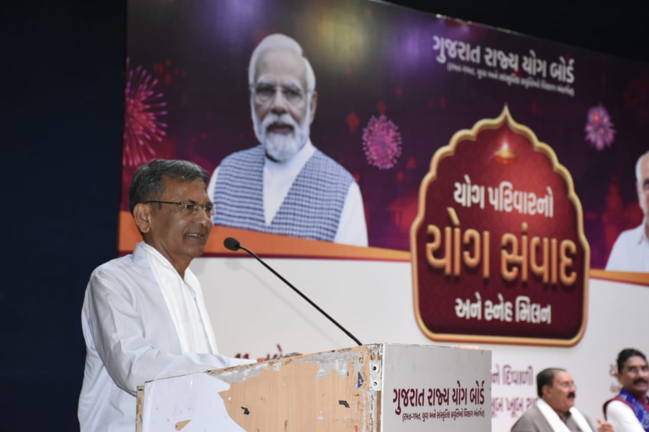 યોગ બોર્ડના ચેરમેનશ્રી શીશપાલજીએ સ્વાસ્થ્ય, સમૃદ્ધિ અને ઐશ્વર્યની શુભેચ્છા અને નૂતન વર્ષના અભિનંદન પાઠવતાં ‘રામ, રામ’ના સંબોધન સાથે ઉદ્બોધન કર્યું હતું કે ગુજરાત સરકારના સહયોગથી વર્તમાનમાં ઘરે-ઘરે યોગ પહોંચાડવાનું લક્ષ્ય છે. મનુષ્ય યોગના માધ્યમથી મનથી યોગી, તનથી નિરોગી, સમાજ માટે સહયોગી અને રાષ્ટ્ર માટે ઉપયોગી બને છે. યોગ કરવાથી ઊર્જા, પ્રેમ, આનંદ મળે છે, દશા બદલાય છે, જીવન આધ્યાત્મિક જીવાય છે. ત્યારે આપણા દેશના નેતૃત્વની દોર જેમના હાથમાં છે, તેવા પ્રધાનમંત્રીશ્રી નરેન્દ્રભાઈ મોદી સ્વયં યોગી છે, જે નાગરિકોનું સૌભાગ્ય છે.