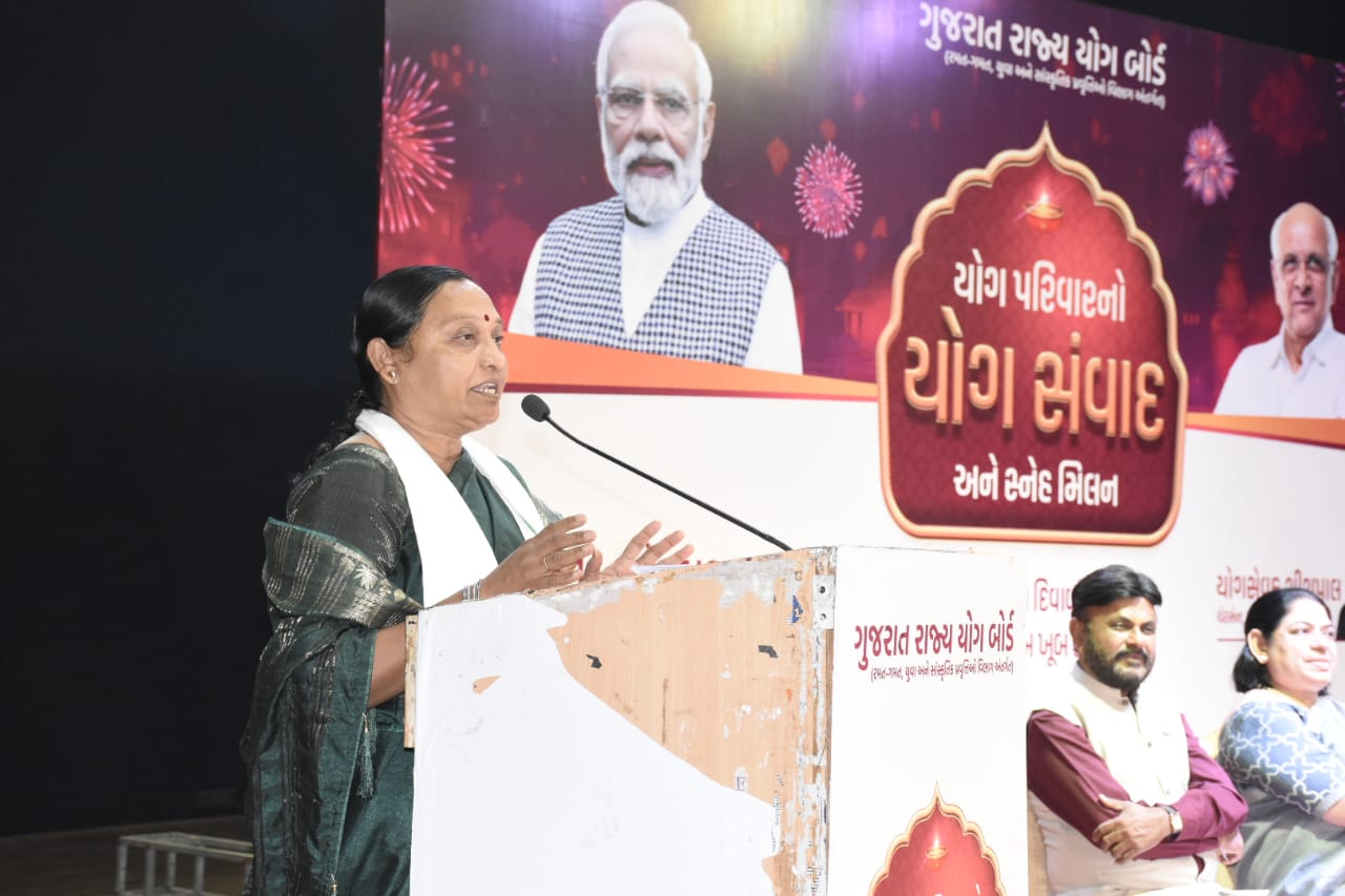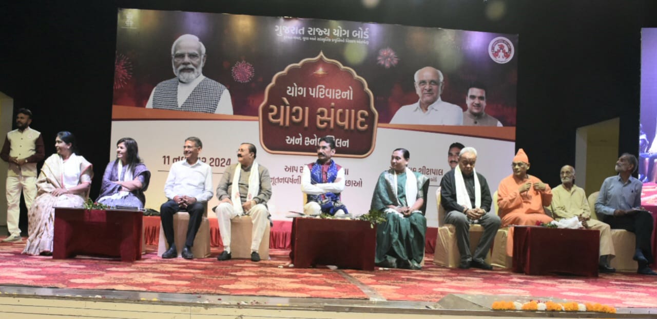 ગુજરાત રાજ્યના રમતગમત, યુવા અને સાંસ્કૃતિક પ્રવૃત્તિઓ વિભાગ હેઠળના રાજ્ય યોગ બોર્ડ દ્વારા ચેરમેનશ્રી શીશપાલજીની અધ્યક્ષતામાં નૂતન વર્ષ નિમિત્તે યોગ પરિવારનો યોગ સંવાદ અને સ્નેહમિલન કાર્યક્રમ યોજાયો હતો. જેમાં મેયરશ્રી નયનાબેન પેઢડીયા, સાંસદશ્રી રામભાઈ મોકરીયા, ધારાસભ્યશ્રીઓ ડો. દર્શિતાબેન શાહ અને રમેશભાઈ ટીલાળા વિશેષ ઉપસ્થિત રહ્યા હતા.