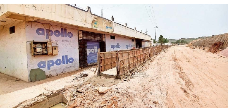 નાગોર ફાટકથી જીઆઇડીસી સુધી ગત 2,જાન્યુઆરી 2024 ના રોજ અનધિકૃત બાંધકામો તોડી પડાયા હતા.