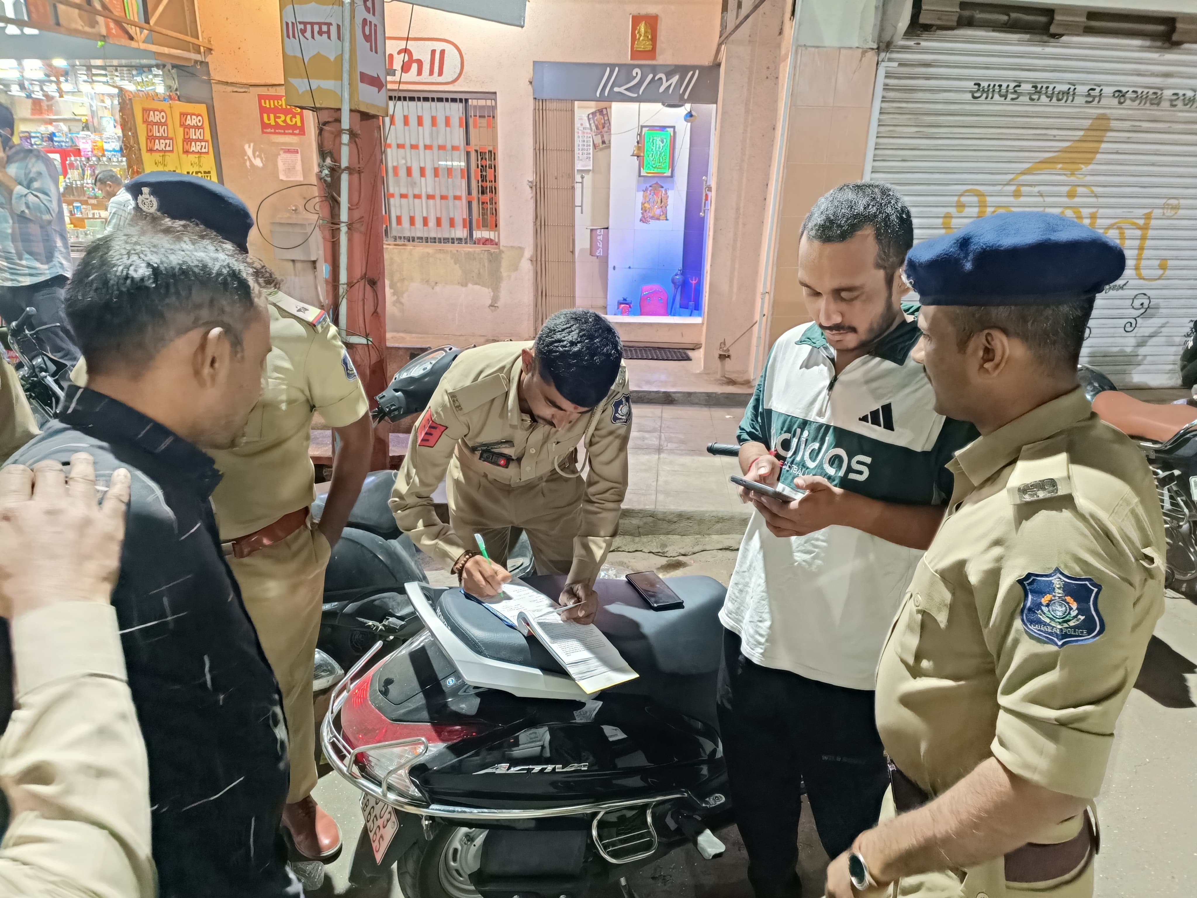 દરમિયાન, ગોંડલ શહેરમાં અસામાજિક પ્રવૃત્તિઓને અંકુશમાં લેવા એ અને બી ડિવિઝન પોલીસ, એલસીબી અને એસઓજી દ્વારા મોડી રાત્રે વિશેષ ડ્રાઈવ યોજવામાં આવી હતી. બસ સ્ટેન્ડ ચોક વિસ્તારમાં વાહન ચેકિંગ હાથ ધરવામાં આવ્યું હતું. વગર લાઇસન્સે વાહન ચલાવતા ચાલકોને દંડ ફટકારવામાં આવ્યો હતો.