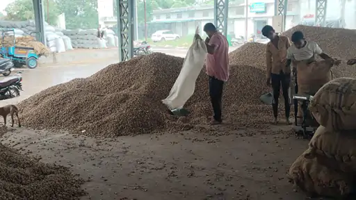 દિવાળીના તહેવાર બાદ સોમવારથી યાર્ડ શરુ થયા છે. યાર્ડ શરુ થતાં જ માવઠાના કારણે યાર્ડમાં જગ્યાના અભાવે મગફળીની આવક બંધ રાખવામાં આવી હતી. તેમ છતાં પહેલા દિવસે સોમવારે જ મગફળીની ભરેલા વાહનોની કતારો લાગી જતાં યાર્ડ દ્વારા એક ડોમ ખાલી કરાવીને 50 જેટલા વાહનોની આજે મંગળવારે સવારમાં ઉતારી હતી. જેમાં 6855 ગુણી (11996 મણ)ની આવક થઈ હતી.