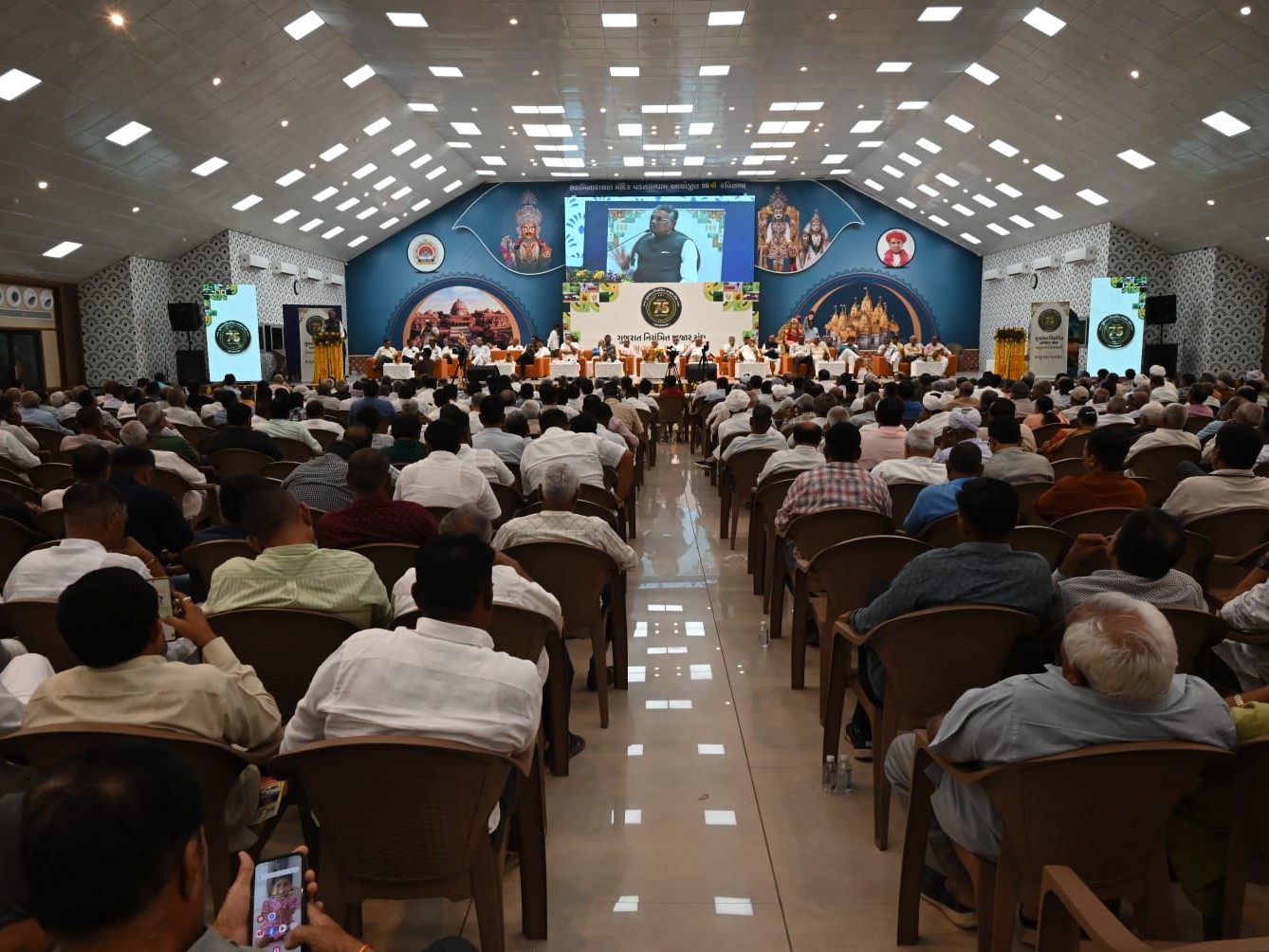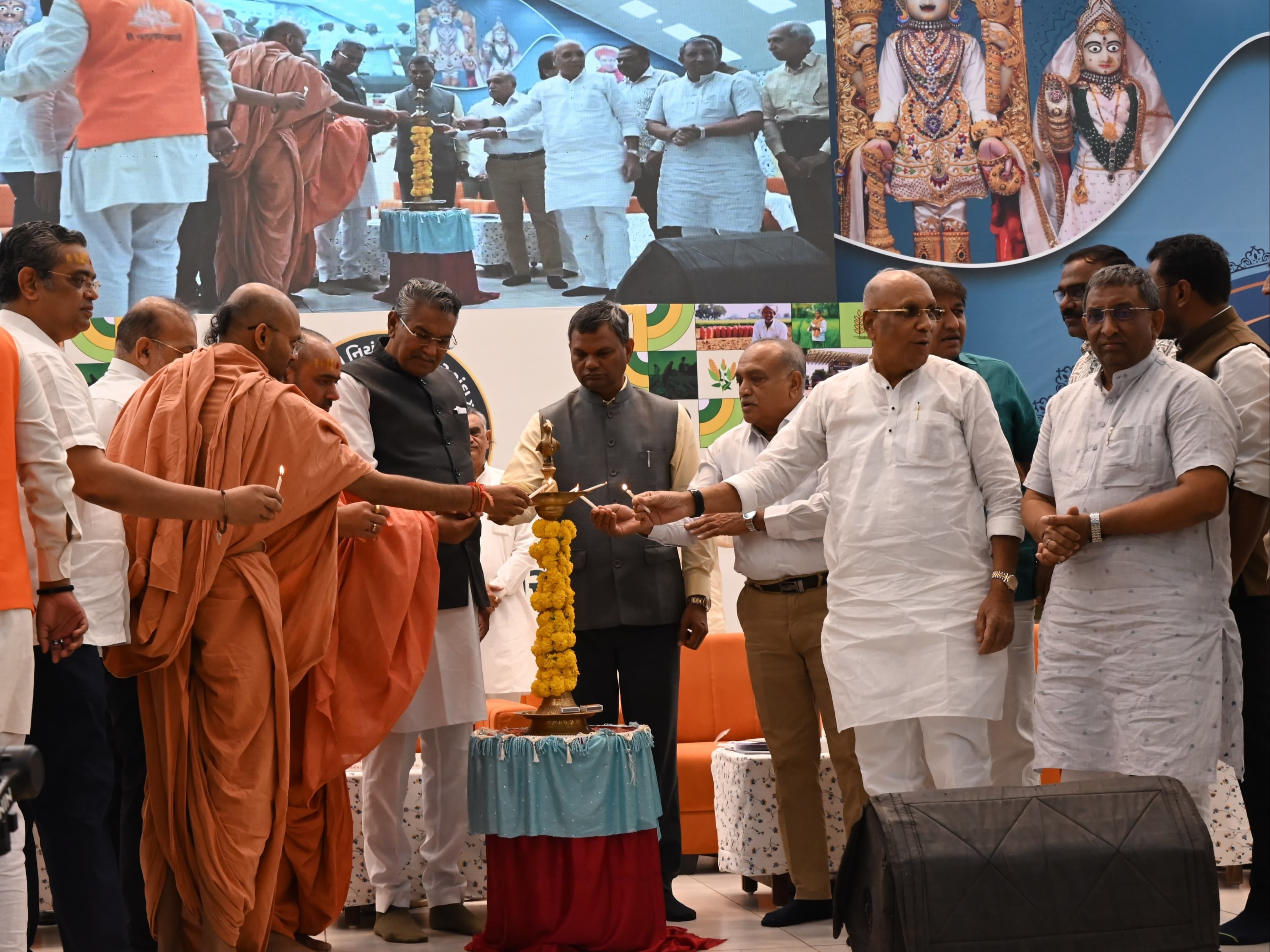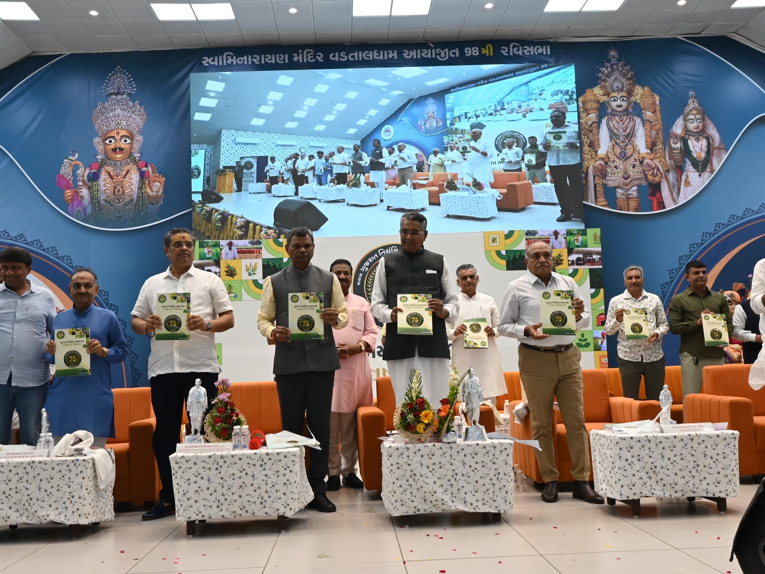 વડતાલ સ્વામિનારાયણ મંદિર ખાતે ગુજરાત નિયંત્રિત બજાર સંઘના 75 વર્ષની ભવ્ય ઉજવણીનો કાર્યક્રમ યોજાયો. કાર્યક્રમમાં કૃષિમંત્રી રાઘવજી પટેલે મુખ્ય અતિથિ તરીકે હાજરી આપી હતી. કૃષિમંત્રીએ રાજ્યના એપીએમસી માર્કેટયાર્ડને સરકાર તરફથી તમામ સહાય આપવાની ખાતરી આપી. તેમણે એપીએમસીના ચેરમેનોને આત્મનિર્ભર માર્કેટયાર્ડ બનાવવા અપીલ કરી. વડાપ્રધાન નરેન્દ્ર મોદીના સહકારથી સમૃદ્ધિની પરિકલ્પના સાકાર કરવા જણાવ્યું. મંત્રીએ સુરત એપીએમસી માર્કેટયાર્ડની કામગીરીને વિશેષ બિરદાવી.