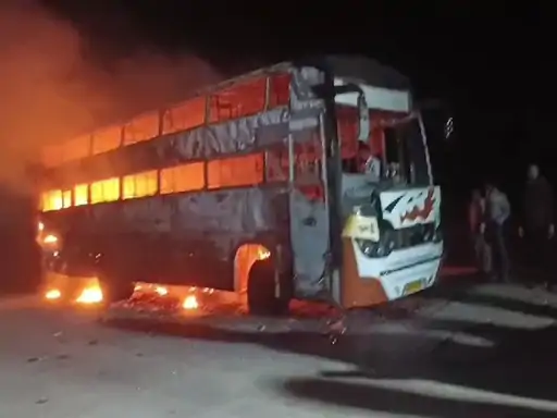 તળાજાના ઠળિયાથી સુરત જવા નીકળેલી ટ્રાવેલ્સ ત્રાપજ પાસે અચાનક અગનગોળો બની, મુસાફરોનો આબાદ બચાવ
