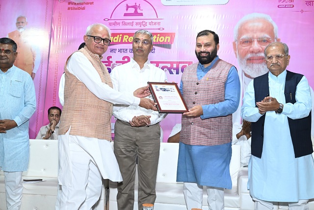 ભારત સરકારના ખાદી ગ્રામોધોગ આયોગના ચેરમેન મનોજકુમાર ગોયલ ની હાજરીમાં 60 મહિલાઓને સિલાઈ મશીન આપવામાં આવ્યા,10 મહિલાનું વિશેષ રીતે સન્માન કરવામાં આવ્યું.
