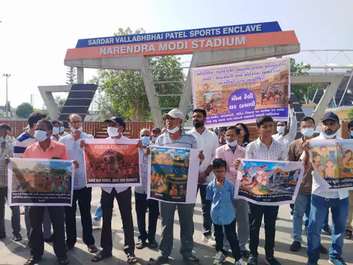 અમદાવાદમાં 2036 ઓલિમ્પિકની યજમાનીની તૈયારીઓના ભાગરૂપે રોડ પહોળા કરવા માટે આસપાસના મકાનોને કપાતમાં લેવાની નોટિસ આપવામાં આવી છે. જેના વિરોધમાં નરેન્દ્ર મોદી સ્ટેડિયમથી કલેક્ટર કચેરી સુધી આસપાસના રહીશો દ્વારા મૌન રેલીનું આયોજન કરવામાં આવ્યું હતું, કારણ કે તેઓ પોતાના ઘર ખાલી કરવા માંગતા નથી. સ્થાનિકોની મૌન રેલી કલેક્ટર ઓફિસ પહોંચી હતી.