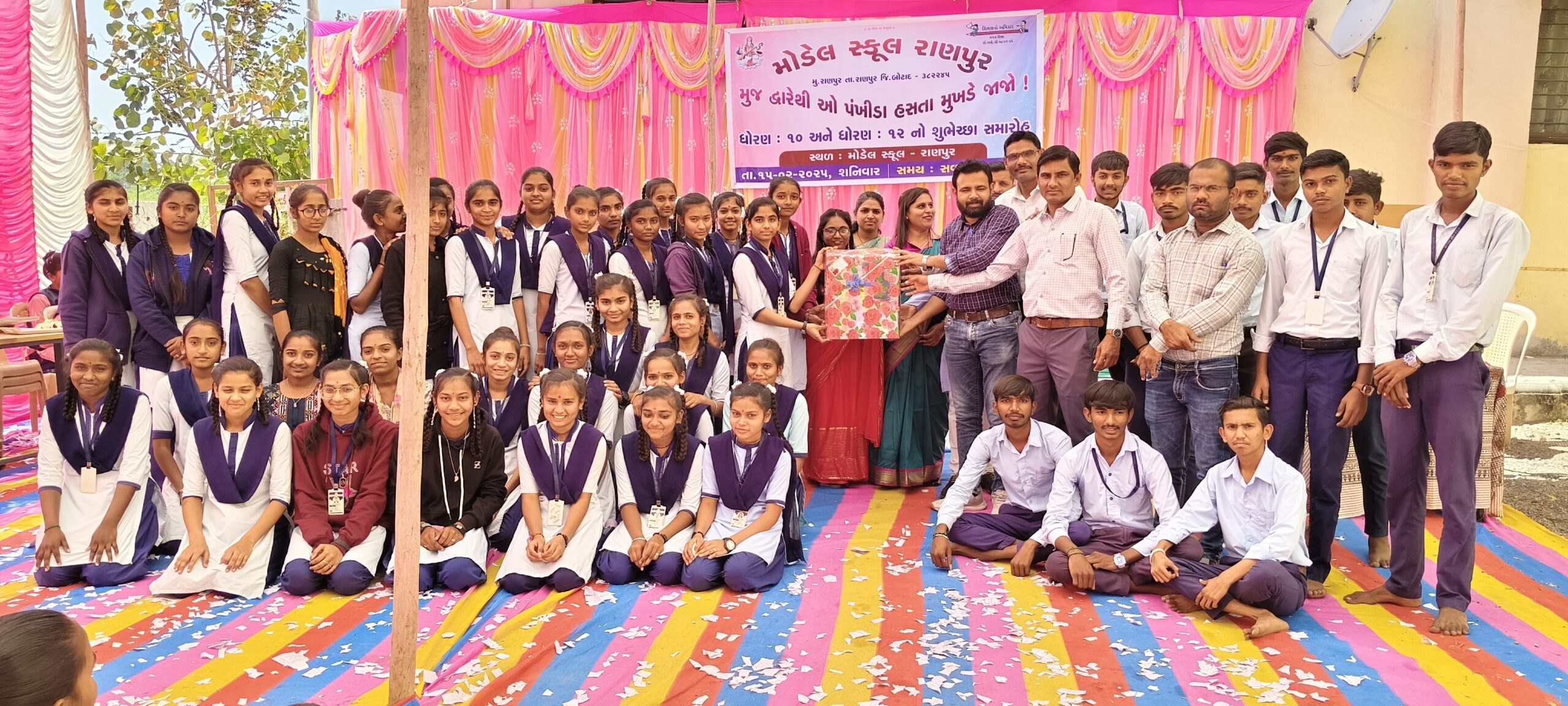 બોટાદ જિલ્લાની મોડલ સ્કૂલ રાણપુરમાં કાર્યકારી આચાર્ય કે.એન. રાઠોડના માર્ગદર્શન હેઠળ તારીખ 15 ફેબ્રુઆરી 2025 ના શનિવારના રોજ ધોરણ 10 અને ધોરણ 12 શુભેચ્છા સમારોહ, તેજસ્વી તારલાઓનું સન્માન સમારોહ અને સાંસ્કૃતિક કાર્યક્રમ એમ ત્રિવિધ કાર્યક્રમોનું આયોજન થયું હતું. માર્ચ 2024 માં ધોરણ 10 અને ધોરણ 12 માં પ્રથમ ત્રણ ક્રમાંકે રહેલ વિદ્યાર્થીઓને શીલ્ડ અને પ્રમાણપત્ર એનાયત કરવામાં આવ્યા હતા. તદુપરાંત સમગ્ર વર્ષ દરમિયાન થયેલી સહઅભ્યાસિક પ્રવૃત્તિઓમાં તાલુકા લેવલથી રાજયકક્ષા લેવલ સુધી ઉત્કૃષ્ટ દેખાવ કરનાર વિદ્યાર્થીઓને સ્ટાફમિત્રોનાં હસ્તે પ્રમાણપત્ર એનાયત કરી પ્રોત્સાહિત કર્યા હતા. શાળાનાં ભૂતપૂર્વ વિદ્યાર્થી ભરવાડ મેઘરાજભાઈ મેપાભાઈ ઇન્ડિયન આર્મીમાં જોડાતા તેમનું પણ સન્માન કરવામાં આવ્યું હતું. ધોરણ 10 અને ધોરણ 12 ના તમામ વિદ્યાર્થીઓને શૈક્ષણિક કીટ આપવામાં આવી હતી. સાથે સાથે તમામ બાળકોને ભોજન પણ કરાવવામાં આવ્યું હતું. સમગ્ર કાર્યક્રમને સફળ બનાવવા માટે શાળાના તમામ સારસ્વત મિત્રોએ ભારે જહેમત ઉઠાવી હતી..