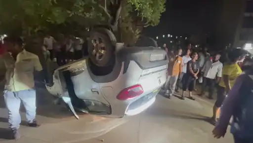 વડોદરા શહેરના ખિસકોલી સર્કલ પાસે 10 જુલાઈની મોડીરાત્રે એક કાર પલટી ગઈ હતી, જેને પગલે મોટી સંખ્યામાં લોકોનું ટોળું સ્થળ પર એકત્રિત થયું હતું. આ અકસ્માતની ઘટના સીસીટીવી કેમેરામાં કેદ થઈ ગઈ હતી, જેમાં જોઈ શકાય છે કે એક કાર અચાનક ડિવાઈડર સાથે અથડાઈ છે અને પછી બે ટપ્પા ખાઈને પલટી જાય છે.