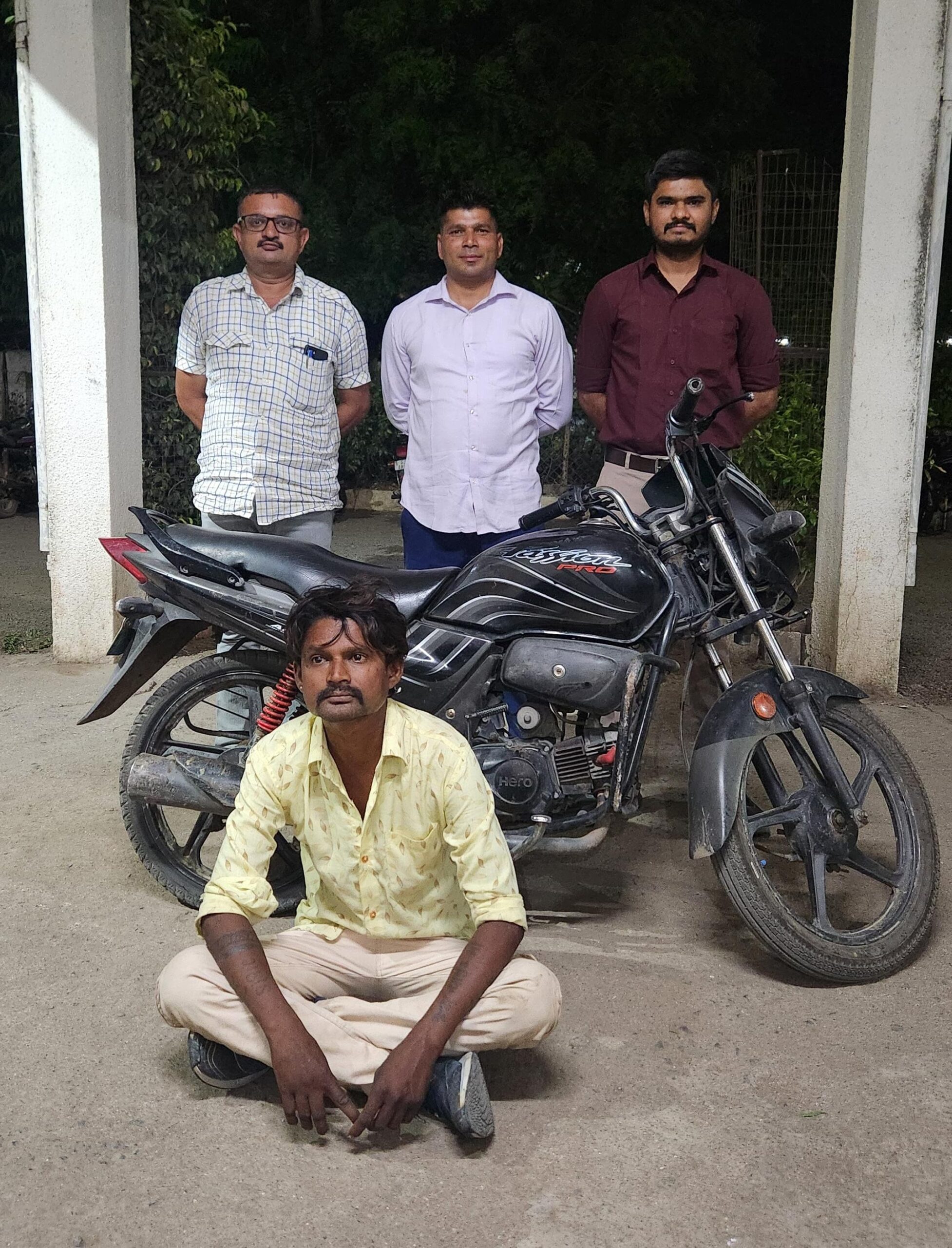 જે અન્વયે અમરેલી એલ.સી.બી. પો.ઇન્સ.વી.એમ.કોલાદરા નાઓની રાહબરી હેઠળ એલ.સી.બી. ટીમ સાવરકુંડલા ટાઉન વિસ્તારમાં પેટ્રોલીંગ દરમ્યાન બાતમી તેમજ ટેકનીકલ સોર્સ આધારે એક ઇસમને શંકાસ્પદ મોટર સાયકલ સાથે પકડી પાડી, મોટર સાયકલ અંગે પુછ પરછ કરી, ટેકનીકલ રીતે ખરાઇ કરતા, મળી આવેલ મોટર સાયકલ સુરત, કતારગામ, ગુરૂકૃપા સોસાયટી પાસેથી, હાથી મંદીર, લક્ષ્મીકાંત આશ્રમ રોડ ખાતેથી ચોરી કરેલ હોવાનું જણાય આવતા, સુરત શહેરના સિંગણપોર – ડભોલી પોલીસ સ્ટેશનનો અનડીટેકટ ગુનો ડીટેકટ કરવામાં આવેલ છે.