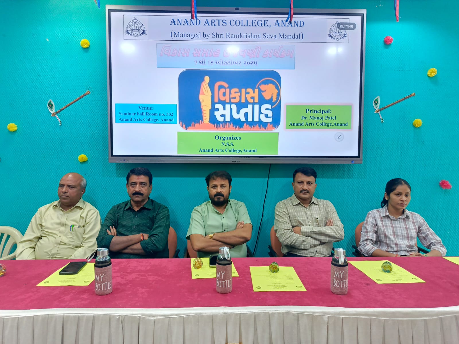 શ્રી રામકૃષ્ણ સેવા મંડળ સંચાલિત આણંદ આર્ટ્સ કોલેજના રાષ્ટ્રીયસેવાયોજના દ્વારા ૭મીઓક્ટોબર 2025 થી ૧૫મી ઓક્ટોબર 2025 દરમિયાન*” વિકાસ સપ્તાહ”* ની ઉત્સાહભેર ઉજવણી કરવામાં આવીહતી