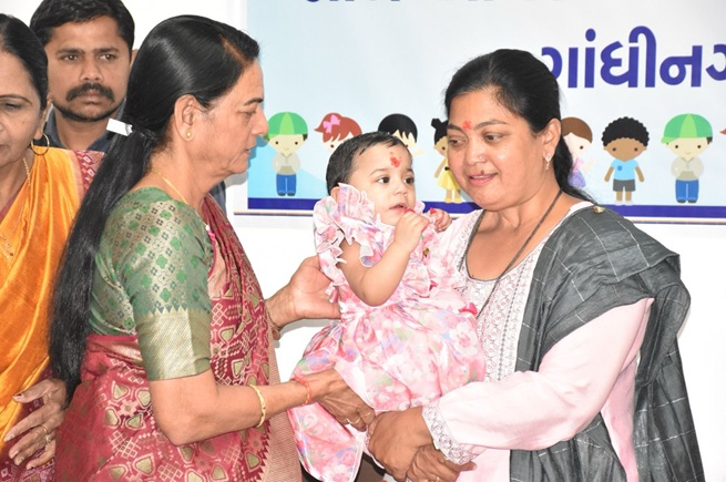 શિશુગૃહ અમદાવાદની બાળકી-રીમીને રાજ્ય બાળ અધિકાર સંરક્ષણ આયોગના અધ્યક્ષ શ્રીમતી ધર્મિષ્ઠાબેન ગજ્જરના હસ્તે ઔરંગાબાદના દંપત્તિને દત્તક અપાઈ