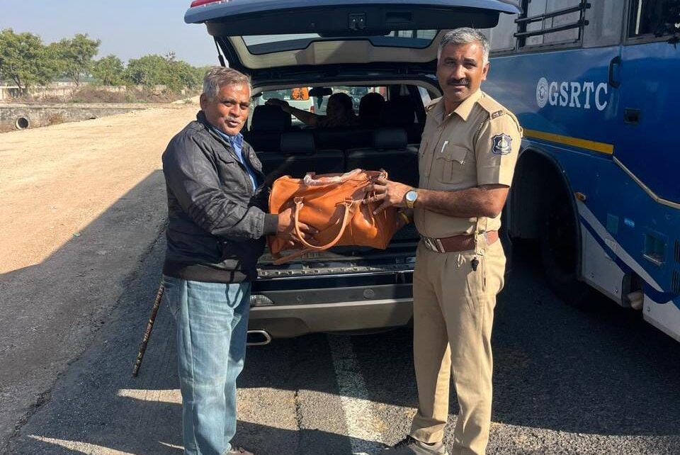 બરવાળા-પોલારપુર રોડ ઉપર ચાલુ કારે બેગ પડી જતા બોટાદ જિલ્લા ટ્રાફિક પોલીસે મૂળ માલિકને શોધી બેગ પરત કરી
