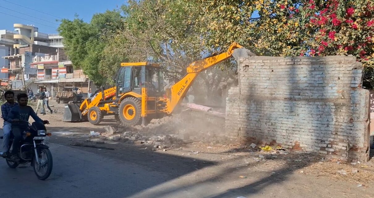 રાણપુર શહેરમાં રોડ ઉપરના ગેરકાયદેસર બાંધકામ ઉપર બુલડોઝર ફળી વળ્યુ