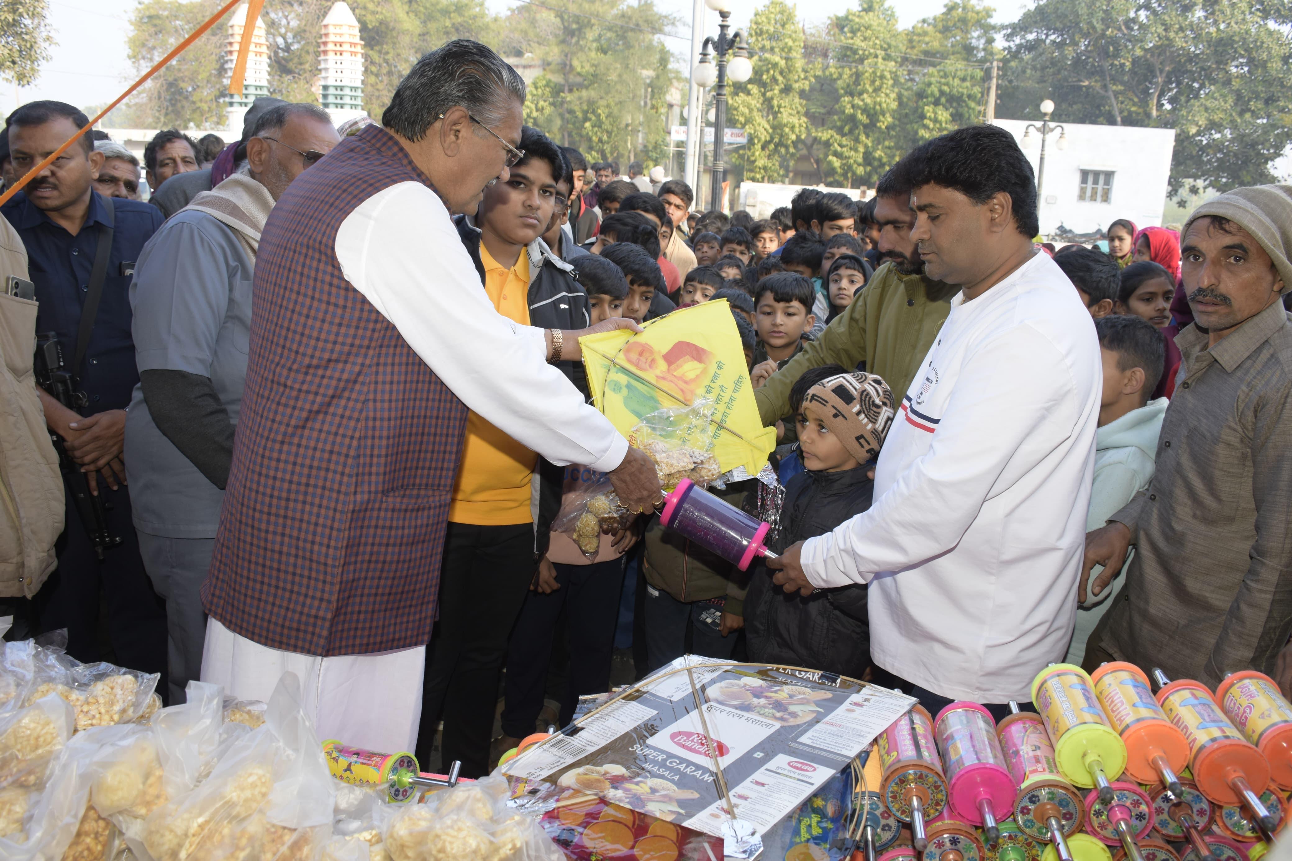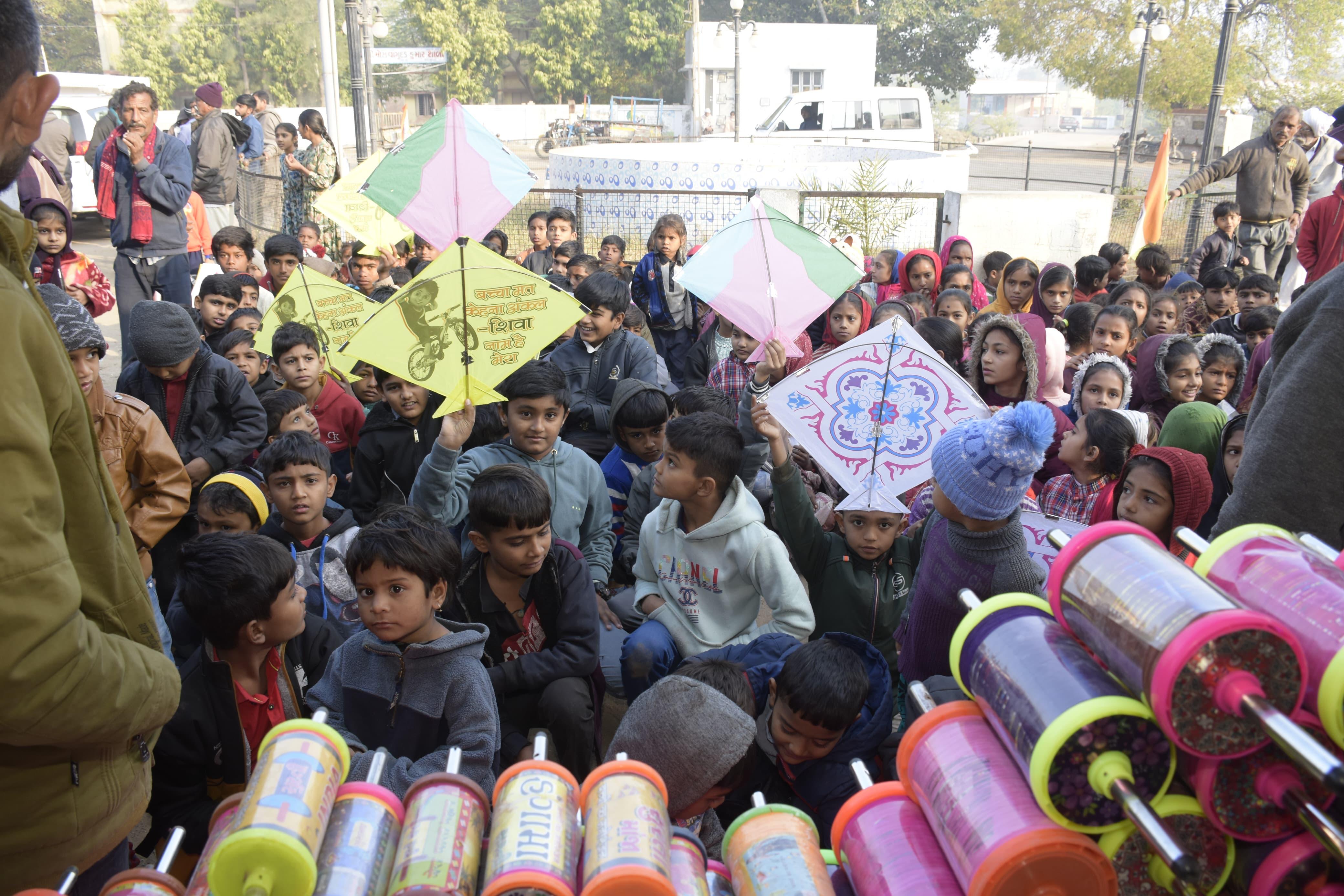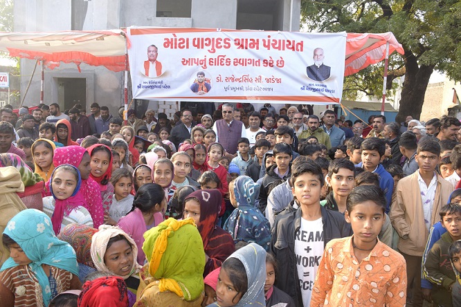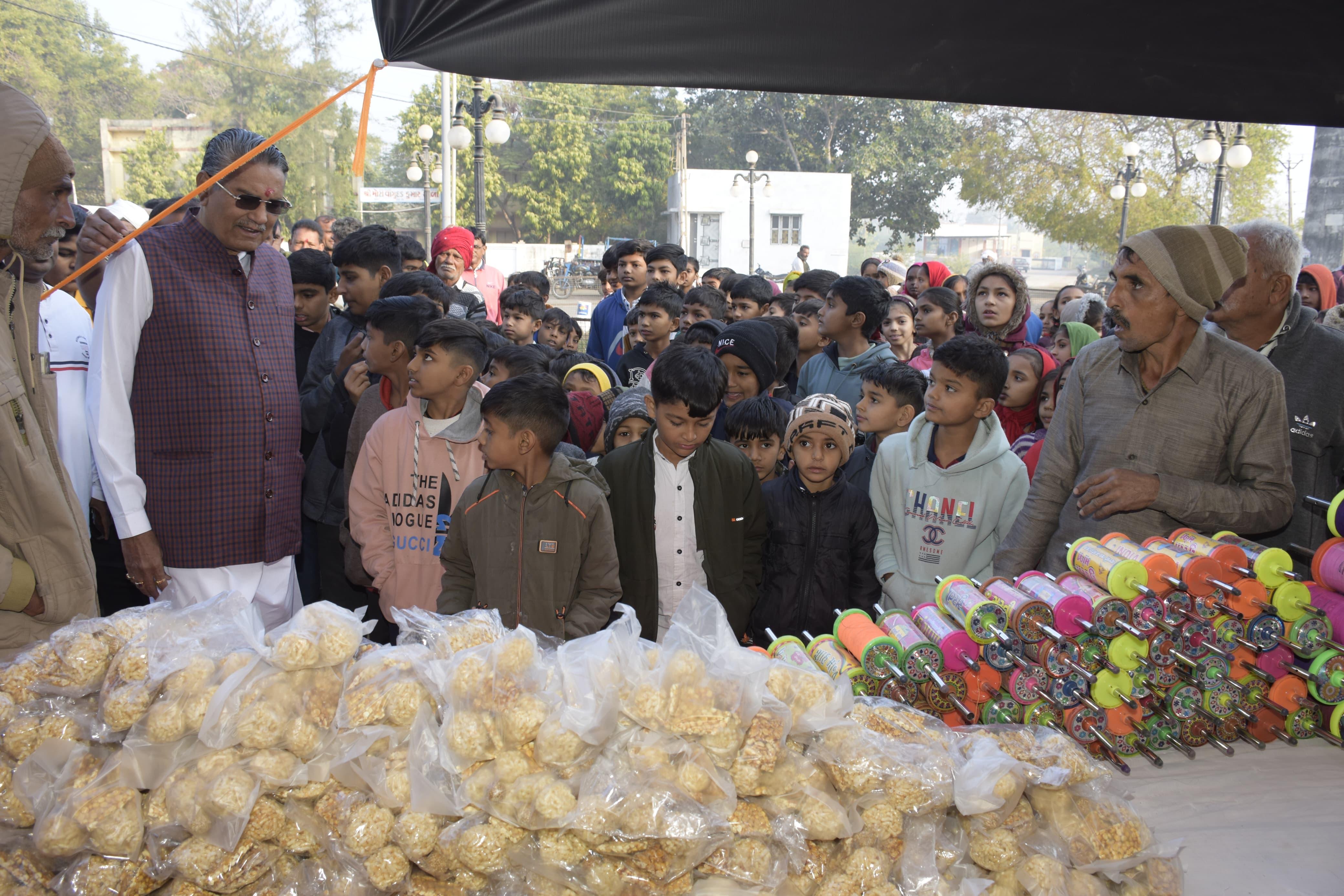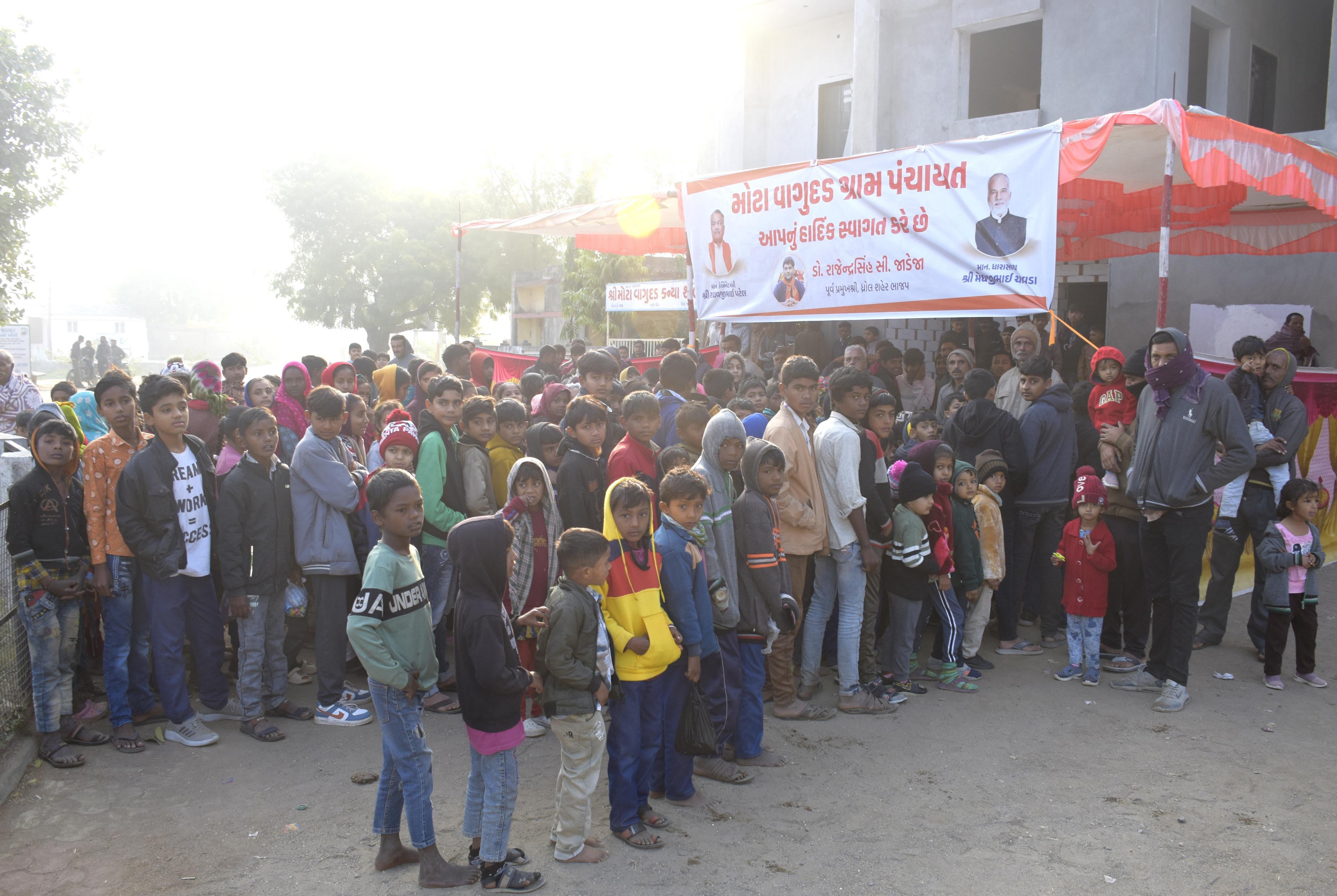 મંત્રીશ્રીએ મોટા વાગુદડ ગામે નાના ભૂલકાઓને પતંગ અને લાડુનું વિતરણ કર્યું