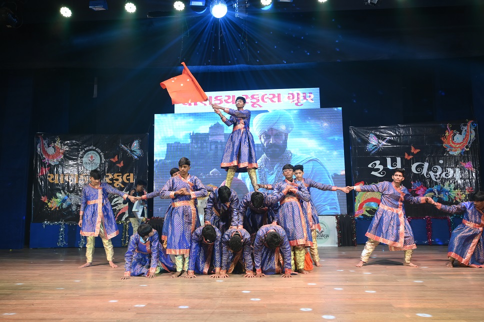 પ્રોગ્રામ બે ભાગમાં વિભાજીત હતો જેમાં પ્રથમ ભાગ માં “સૌરાષ્ટ્ર ધરોહર” ને ઉજાગર કરવામાં આવી હતી જ્યારે બીજા ભાગમાં “શ્રીમદ્ ભગવત ગીતા” દ્વારા ભગવાન શ્રીકૃષ્ણનો સંદેશો વાલીઓ અને મહેમાનો સુધી પહોંચાડવામાં સફળ રહ્યા અને હેમુ ગઢવી નાટ્ય ગૃહનું રંગમચ સાથે સાથે ઓડિયન્સ પણ કૃષ્ણમય બની ગયું હતું અને કૃષ્ણના ભાવમાં આવી નાચવા લાગ્યું હતું.