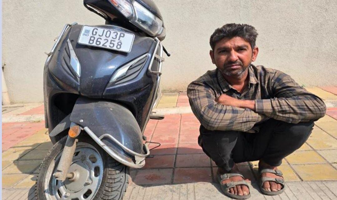 રાજકોટ શહેર તા.૨૫/૧૧/૨૦૨૫ ના રોજ રાજકોટ શહેર મિલ્કત સંબંધી ગુન્હાઓ અટકાવવા તેમજ શહેર વિસ્તારમાં થયેલ વાહન ચોરી, ઘરફોડ ચોરી, ચીલઝડપ, લુંટ વિગેરે અન-ડીટેકટ ગુન્હાઓ શોધી કાઢવા સુચના કરેલ હોય જે અન્વયે ક્રાઇમ બ્રાન્ચ P.I એમ.આર.ગોંડલીયા તથા એમ.એલ. ડામોર તથા સી.એચ.જાદવ ના માર્ગદર્શન હેઠળ ડી.સી.બી. પોલીસ સ્ટેશનના એસ.વી.ચુડાસમા ની ટીમના પોલીસ સ્ટાફ રાજકોટ શહેર વિસ્તારમાં પેટ્રોલીંગમા હતા દરમ્યાન કિશનભાઇ પાંભર તથા મહાવીરસિંહ જાડેજા તથા અરવિંદકુમાર ફતેપરા તથા કરણભાઇ કોઠીવાળ ને મળેલ હક્કિત આધારે ચોરીના એક્ટીવા મોટરસાયકલ સાથે ઇસમને પકડી પાડી કાયદેસરની કાર્યવાહી કરવામાં આવેલ છે. નરેશભાઇ છગનભાઇ જોગયાણી ઉ.૪૦ રહે.-કુવાડવા રોડ સાત હનુમાન પાછળ રૂડા ટ્રાન્સપોર્ટ રાજકોટ. એક બ્લુ કલરનું હોન્ડા કંપનીનુ એક્ટીવા મોટરસાયકલ જેના રજી.નં. GJ-03-PB-6258 કિ.૬૫૦૦૦ નો મુદ્દામાલ કબ્જે કરેલ હોય.