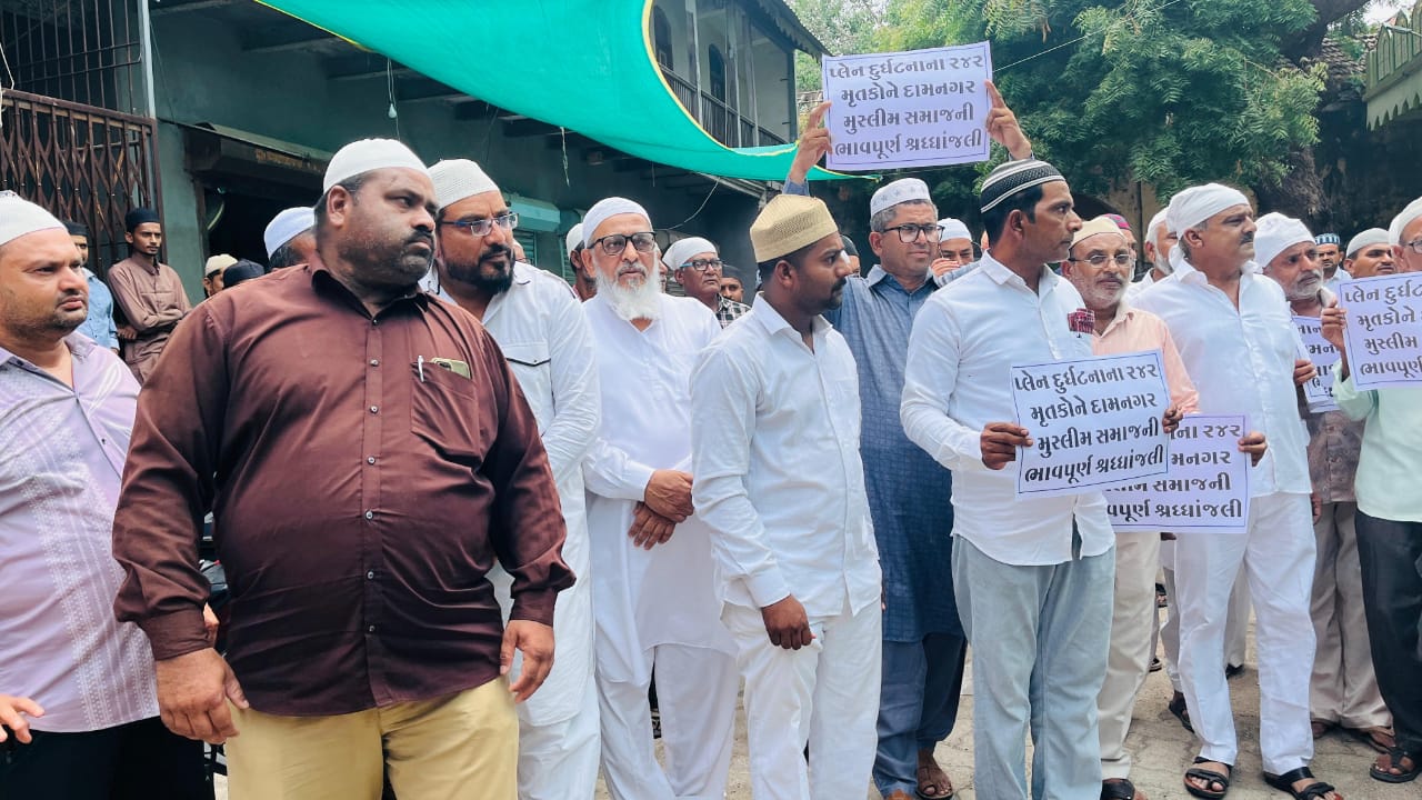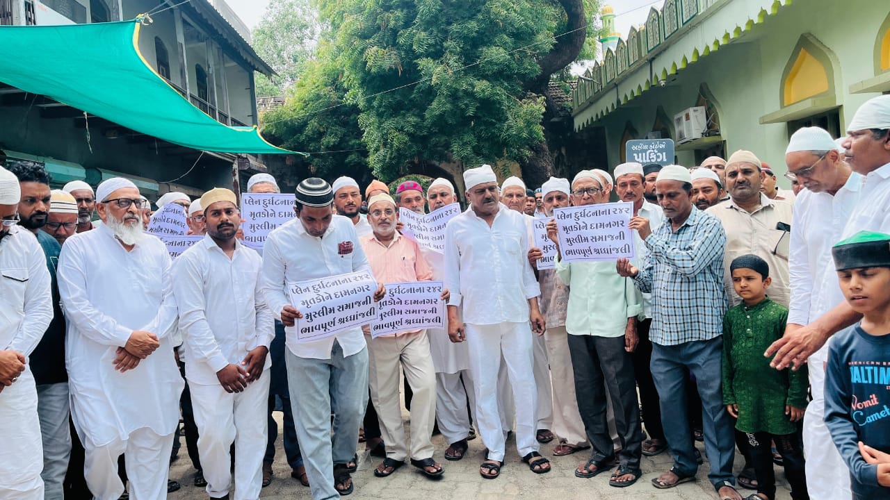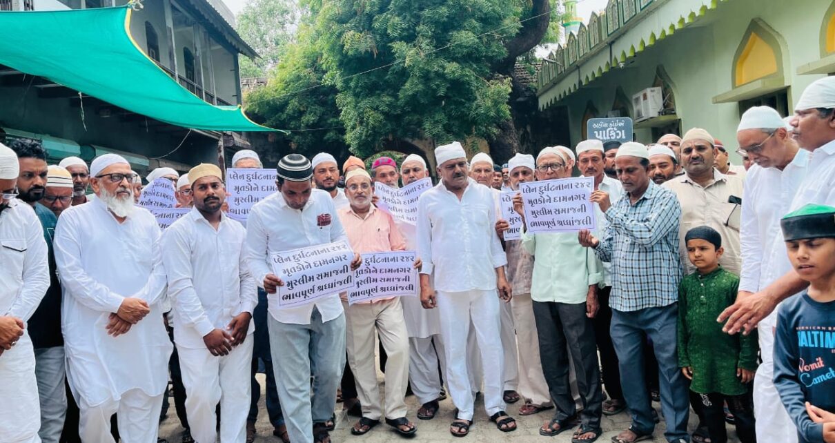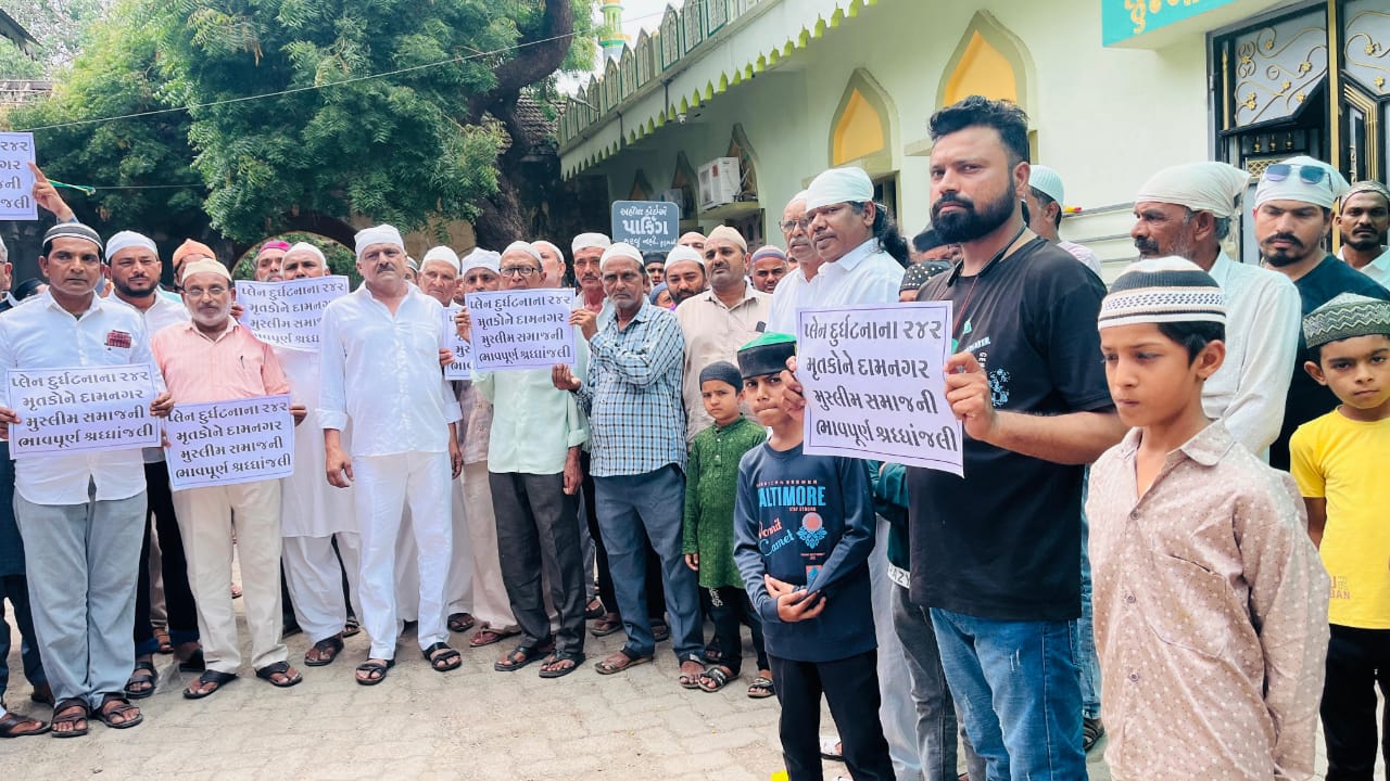 દામનગર સમસ્ત મુસ્લિમ સમાજે મૌન રેલી યોજી પ્લેન ક્રેશ દુર્ઘટના ના મૃતકો આત્મશાંતિ માટે દુવા કરી
