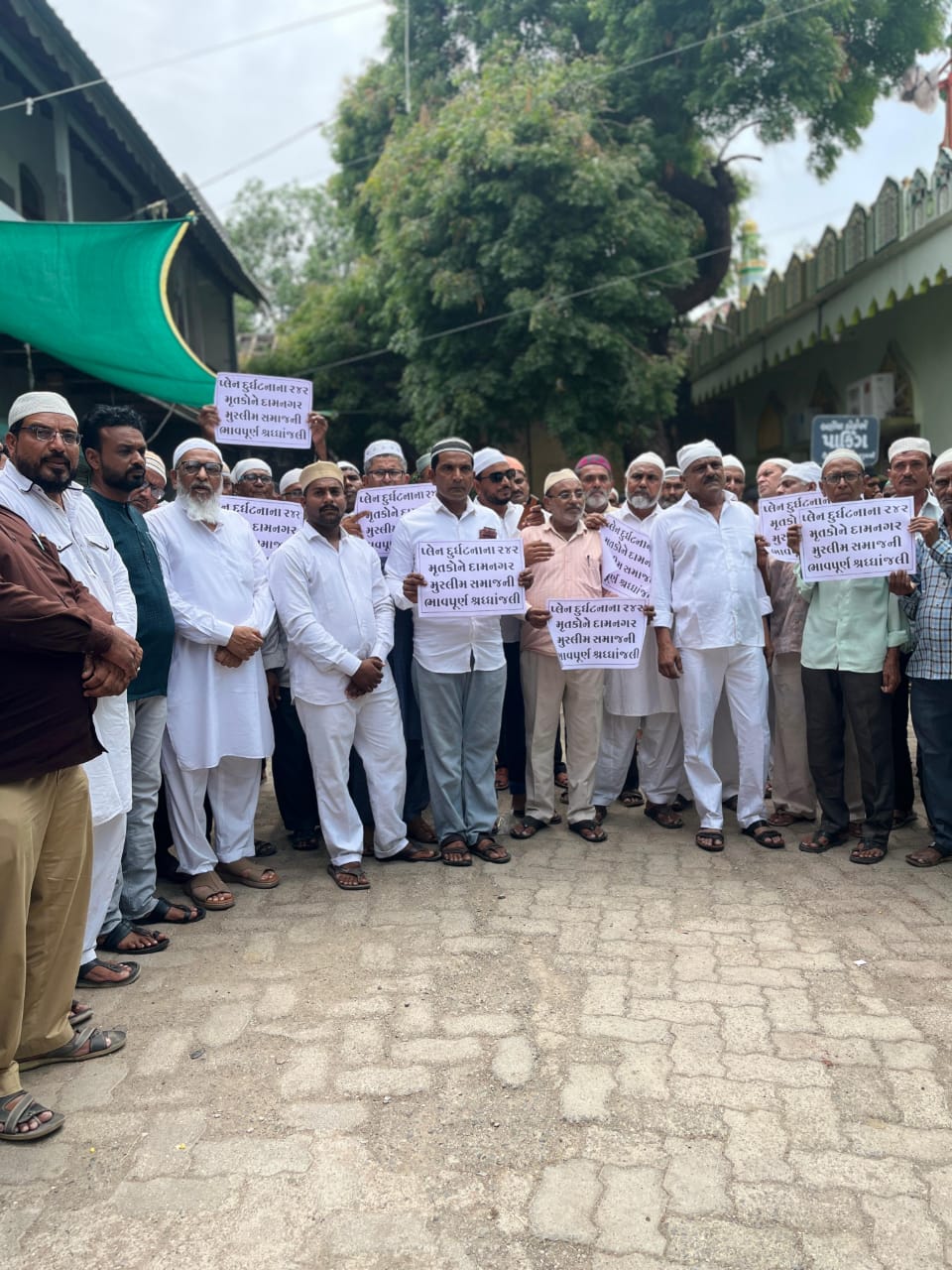 દામનગર શહેર ના સમસ્ત મુસ્લિમ સમાજે જુમ્મા ની નમાઝ બાદ મૌન રેલી યોજી પ્લેન ક્રેશ દુર્ઘટના ના મૃતકો ને શ્રધાંજલિ આપી જુમ્મા મસ્જિદ ખાતે થી પ્રસ્થાન થયેલ મૌન રેલી શહેર ના મુખ્ય માર્ગો થી સરદાર ચોક થી મોટાપીર ની દરગાહ ખાતે પહોંચી હતી જ્યાં શહેર ભર ના મુસ્લિમ સમાજે અમદાવાદ પ્લેન ક્રેશ ની દુઃખદ ઘટના માં મૃત્યુ પામેલ મુસાફરો અને તબીબી શિક્ષણ મેળવતા જે બી ડેન્ટલ કોલેજ ના છાત્રો ને શ્રધાંજલિ આપી દુવા કરી હતી પ્લેકાર્ડ દ્વારા મૃતકો ને મૌન રેલી યોજી શ્રધાંજલિ આપી હતી જેમાં ખૂબ મોટી સંખ્યા માં મુસ્લિમ સમાજ ઉપસ્થિત રહ્યો હતો