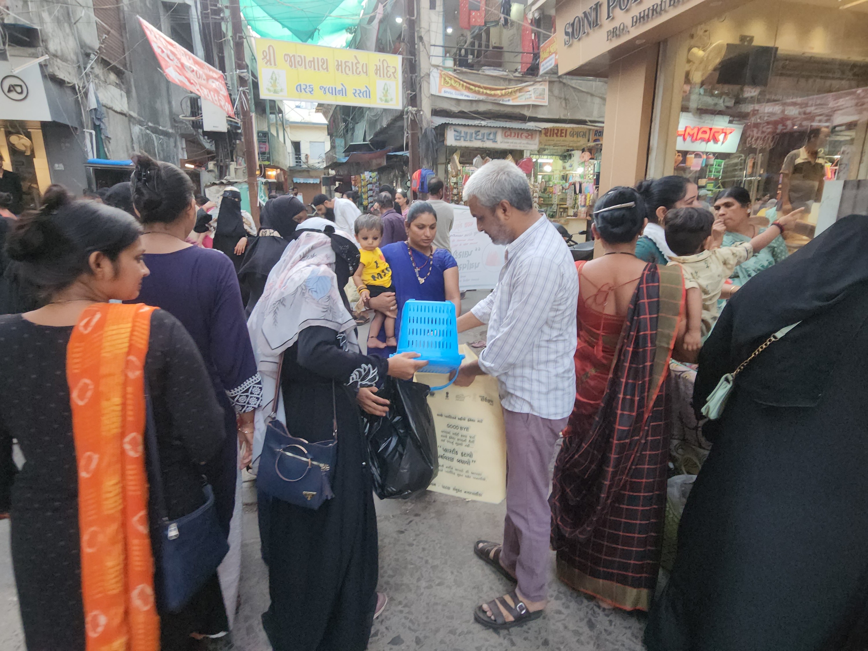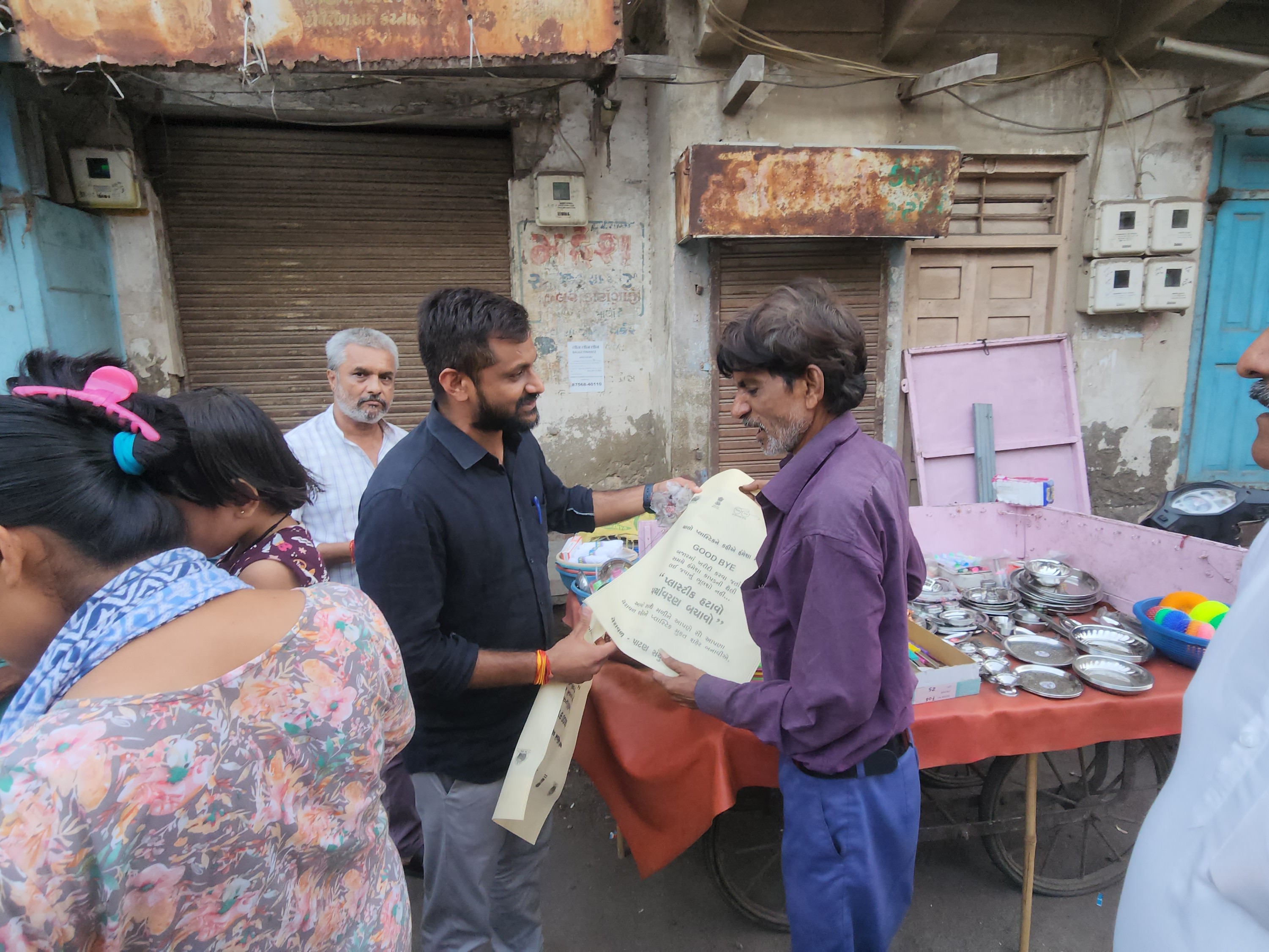 ટીમે બજારોમાં ફરીને દુકાનદારો, લારી અને ગલ્લાવાળાઓને પ્લાસ્ટિકની થેલીને બદલે કાપડની થેલીનો ઉપયોગ કરવા સમજાવ્યું હતું. સાથે જ તેમને કાપડની થેલીઓનું વિતરણ પણ કરવામાં આવ્યું હતું.