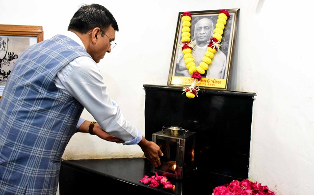 મંત્રીશ્રી તથા મહાનુભાવોએ કરમસદ સ્થિત સરદાર પટેલના નિવાસ્થાનની મુલાકાત લઈને સરદાર પટેલની પ્રતિમાને સુતરની આંટી પહેરાવી ભાવાંજલિ અર્પણ કરી