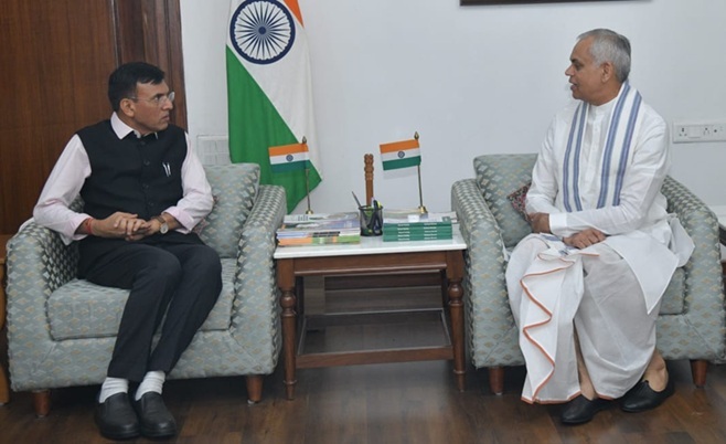 આ પ્રસંગે રાજ્યપાલશ્રીએ દેશભરમાં પ્રધાનમંત્રીશ્રી નરેન્દ્રભાઈ મોદી દ્વારા પ્રેરિત રાષ્ટ્રીય પ્રાકૃતિક કૃષિ મિશન, સ્વદેશી અભિયાન, સ્વચ્છતા અભિયાન, યુવા વિકાસ જેવા વિવિધ વિષયો પર કેન્દ્રીય મંત્રીશ્રી સાથે વિગતે ચર્ચા કરી હતી. કેન્દ્રીય મંત્રીશ્રીએ વર્તમાન સમયમાં ભારતમાં સ્પોર્ટ્સ ઈન્ફ્રાસ્ટ્રક્ચર, યુવા કૌશલ્ય તેમજ રોજગાર લક્ષી બાબતો અંગે કેન્દ્ર સરકાર દ્વારા કરવામાં આવતા વિવિધ કાર્યો અને નવીન આયામોથી રાજ્યપાલશ્રીને માહિતગાર કર્યા હતા. આગામી સમયમાં ભારતના ખેલાડીઓ આંતરરાષ્ટ્રીય સ્તરે દેશનું નામ વધુ રોશન કરે તેવા પ્રયાસોને પ્રોત્સાહન આપવા રાજ્યપાલશ્રીએ આ મુલાકાત દરમ્યાન જણાવ્યું હતુ.