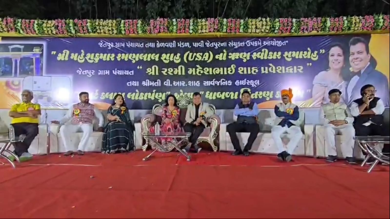 પ્રવેશ દ્વાર થી શ્રીમતી વી.આર. શાહ સાર્વજનિક હાઇસ્કુલ સુધી આદિવાસી નૃત્ય સાથે ગ્રામજનો દ્વારા NRI “Mike Shah” અને તેમના પત્ની રશ્મિશાહ દાતા શ્રીનુ ફુલહાર અને પુષ્પગુચ્છ થી સ્વાગત અને સન્માન કરવામાં આવ્યું હતું. શ્રીમતી વી.આર. શાહ સાર્વજનિક હાઇસ્કૂલ ખાતે તેમના દ્વારા આપયેલ લગભગ 51 લાખ જેટલી માતબર રકમથી બનેલ “સ્માર્ટ ક્લાસ” ની તકતીનું પણ તેમના હસ્તે અનાવરણ કરવામાં આવ્યું હતું. જ્યારે શિયાળાની ઋતુ હોય 800 જેટલા જરૂરિયાતમંદ પરિવારોને “ધાબળા વિતરણ” કરવામાં આવ્યા હતા.
