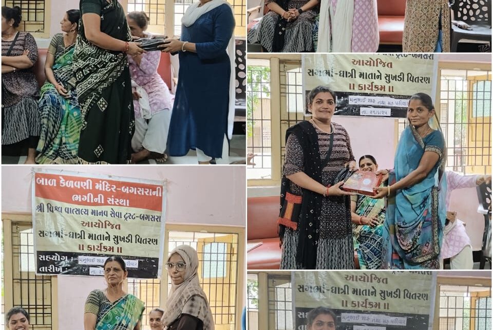 બગસરા વિશ્વ વાત્સલ્ય માનવ સેવા ટ્રસ્ટ બગસરા દ્વારા, આંતરરાષ્ટ્રીય યોગ દિવસ નિમિત્તે સ્લમ વિસ્તાર ના વિચરતી અને વિમુક્ત જાતિ ના સરાણિયા દેવીપૂજક સમાજના ગરીબ સગર્ભા બહેનો ને સુખડી વિતરણ કરવામાં આવેલ. સંસ્થા ના શુભેચ્છક શ્રી દિનેશભાઈ ઠાકર ની ભલામણ થી મુંબઈ ના જાણીતા દાતા શ્રી મનુભાઈ શાહ ના સહયોગથી બગસરા ના મહિલા અગ્રણી શ્રી ભાવના બેન સતાસીયા અને ભારતીબેન અમરેલીયા ની ઉપસ્થિતિ માં જરૂરીયાત મંદ પરીવાર ના બહેનો ને સુખડી વિતરણ કરવામાં આવેલ. આ પ્રસંગે બહેનો ને જરૂરી માર્ગદર્શન પણ આપવામાં આવેલ. સંસ્થા દ્વારા છેલ્લા ત્રણ વર્ષથી આ કાર્યક્રમ સરસ રીતે ચાલી રહ્યો છે, તેમ દેવચંદ સાવલિયા ની યાદી માં જણાવેલ છે.