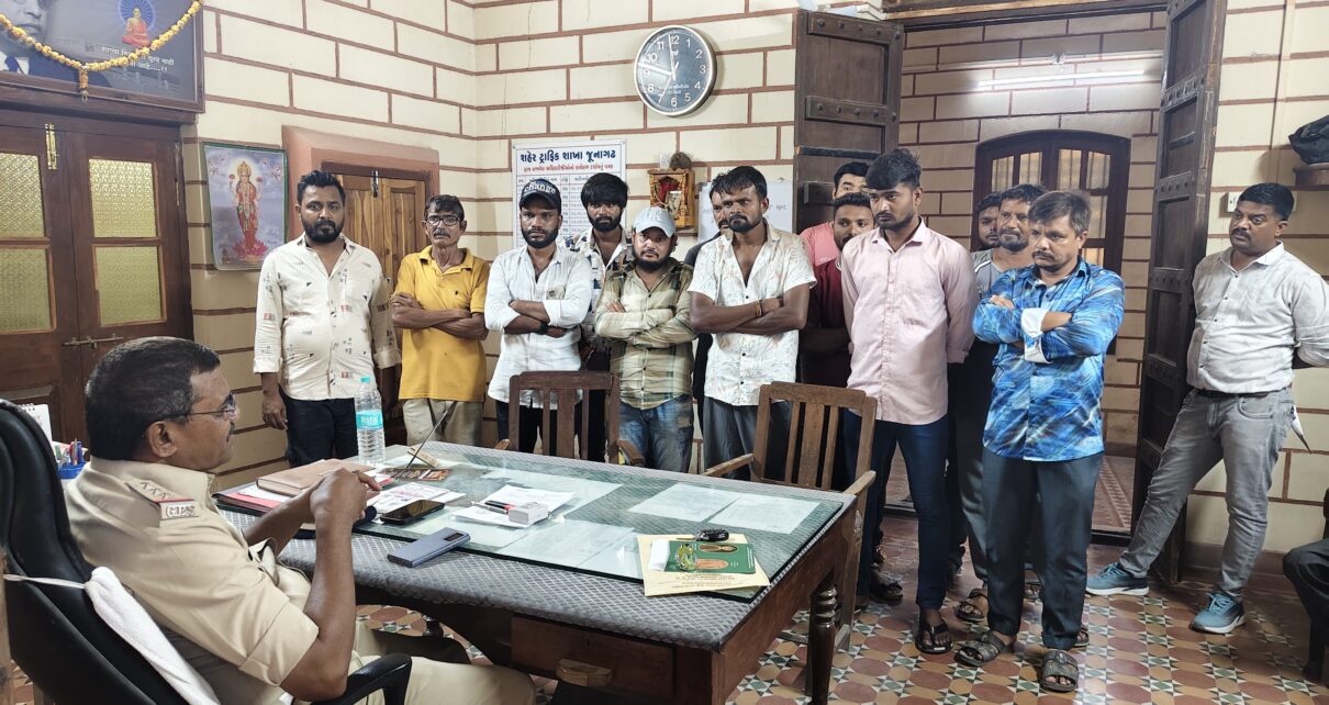 જુનાગઢ રેન્જના પોલીસ મહાનિરીક્ષક શ્રી નીલેશ જાજડીયા સાહેબની તેમજ પોલીસ અધિક્ષક શ્રી સુબોધ ઓડેદરા સાહેબનાઓએ જુનાગઢ શહેરમાં નવાબના સમયથી રોડ રસ્તા હોય અને હાલમાં તેના કરતા વાહનમાં ઘણો બધો વધારો થયેલ હોય જેથી જુનાગઢની જનતાને ટ્રાફિકની સમસ્યાનું નિવારણ કરવા ડી.વાય.એસ.પી. શ્રી હિતેષ ધાંધલ્યા સાહેબ, જુનાગઢ શહેર નાઓની સુચના મુજબ શહેર ટ્રાફિક શાખાના પી.આઇ.શ્રી બી.બી.કોળી નાઓએ શહેરના એમ.જી રોડ,ચિતાખાના,ગાંધીચોક,એસ.ટી.બસ સ્ટેન્ડ, ત્રીમુર્તી રોડ, તળાવ રોડ આઝાદચોક, કાળવા ચોક જેવા વિસ્તારના વાહન ચાલકો દ્વારા આડેધડ પાર્કિંગ કરી, અન્ય ટ્રાફિક નિયમનનું પાલન કરનાર વાહન ચાલકોને અડચણ કરતા વાહન ચાલક વિરૂધ્ધ જેમા મો.સા,રીક્ષાઓ, ફોર વ્હિલરનાઓને લોક મારી તેમજ રીક્ષા ચાલકો ગમે ત્યા પેસેન્જરને બેસાડવા ઉતારવા વાહનો પાર્ક કરતા આશરે ૨૫ જેટલા રીક્ષાઓને દંડની કાર્યવાહી કરવામાં આવેલ છે.