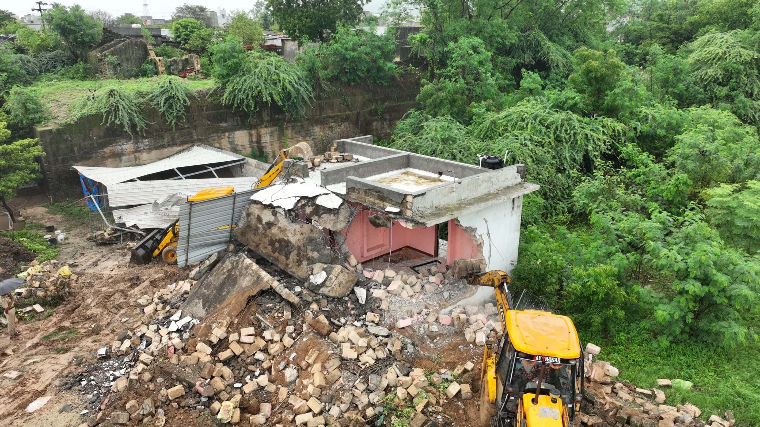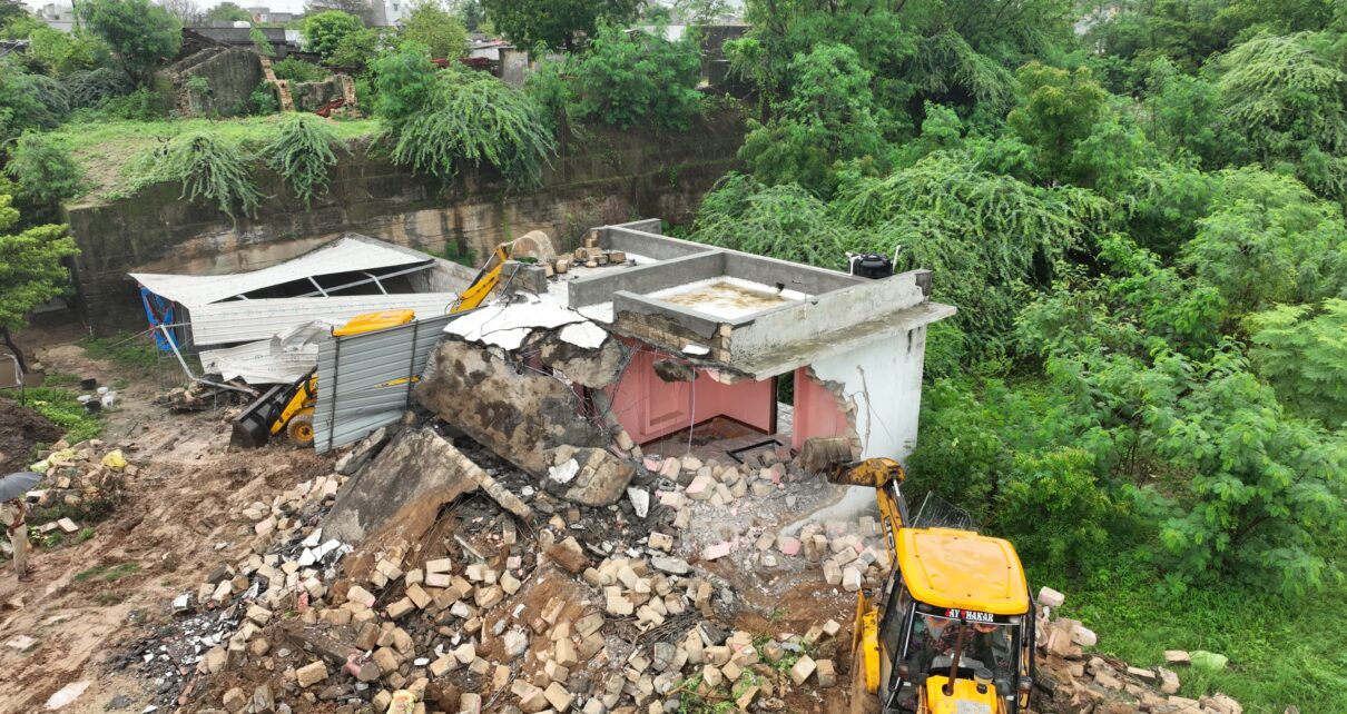 જૂનાગઢ ગાંધીગ્રામ અખંડ સૌભાગ્ય વતી ભવનની પાસે રહેતા ગુજસીટોકના મુખ્ય આરોપી કાળા દેવરાજભાઇ રાડા રબારી ની ગુજસીટોકના ગુન્હાના કામે આરોપીની ગેરકાયદેસર રીતે ઉભી કરાયેલ તથા દબાણ કરેલ મિલ્કતો અંગેની માહિતી એકત્રીત કરી મામલતદારશ્રી જૂનાગઢ તરફ મોકલતા જૂનાગઢ, જિલ્લા કલેકટરશ્રી અનીલ રાણાવસીયા સાહેબ દ્વારા આરોપી કાળા દેવરાજ રાડા દ્વારા ગેરકાયદેસર રીતે સરકારી જમીન પર કરાયેલ દબાણો દુર કરવા હુકમ કરવામાં આવતા આજરોજ પોલીસ અધિક્ષકશ્રી સુબોધ ઓડેદરા સાહેબના સુચના તથા માર્ગદર્શન હેઠળ પ્રાંત અધિકારીશ્રી ચરણસિંહ ગોહિલ તથા જૂનાગઢ શહેર ડીવીઝનના ના.પો.અધિ.શ્રી હિતેષ ધાંધલ્યા સાહેબ તથા તથા મામલતદાર શહેર વિભાગ શ્રી કે.એન.ત્રિવેદીની આગેવાની હેઠળ ક્રાઇમ બ્રાન્ચ, જૂનાગઢ, એસ.ઓ.જી. શાખા, એ ડીવીઝન, બી ડીવીઝન તથા સી ડીવીઝન પો.સ્ટે.ના પો.અધિકારી તથા પો.કર્મચારીઓ તથા સીટી સર્વેયર શ્રી દશરથસિંહ જાદવ તથા જી.ઇ.બી. જૂનાગઢ ટીમ સાથે આરોપી કાળા દેવરાજ રાડા રબારી દ્વારા જૂનાગઢ ગાંધીગ્રામ લીરબાઇપરા વિસ્તાર રામચોક પાસે આવેલ સરકારી જમીન સર્વે નંબર-૩૦૮ કુલ-૭૫૦ ચોરસ મીટર પર પોતાના રહેણાંક હેતુસર ગેરયકાયદેસર રીતે બાંધવામાં આવેલ આલીશાન બંગલો તે સરકારી જમીનની કિ.રૂા.૨૮,૫૦,૦૦૦/- ગણી શકાય તે બંગલો તેમજ કેન્દ્રીય વિદ્યાલય પાસે સરકારી જમીન સર્વે નંબર-૩૯૭ પૈકી ૩૫૦૦૦ ચોરસ મીટરમાં ગેરકાયદેસર રીતે બનાવવામાં આવેલ ફાર્મ હાઉસ તે સરકારી જમીનની કિ.રૂા.૮,૫૦,૦૦,૦૦૦/- જે બન્ને સરકારશ્રીની મિલ્કત પર આરોપી કાળા દેવરાજ રાડા દ્વારા કરવામાં આવેલ ગેરકાયદેસર બાંધકામ પર બુલડોઝર ફેરવી તોડી પાડી ગેરકાયદેસર દબાણ દુર કરવામાં આવેલ.