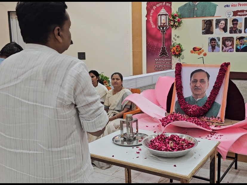 અમદાવાદની વિમાન દુર્ઘટનામાં જીવ ગુમાવનારા મૃતકોને શ્રદ્ધાંજલિ આપવા માટે ખેડા જિલ્લા ભાજપે નડિયાદના સંતરામ મંદિર ખાતે શ્રદ્ધાંજલિ સભાનું આયોજન કર્યું હતું. સત્સંગભવન ખાતે યોજાયેલી આ સભામાં ખેડા જિલ્લા ભાજપ પ્રમુખ નયનાબેન પટેલ ઉપસ્થિત રહ્યા હતા. પૂર્વ કેન્દ્રીય મંત્રી અને ખેડાના સાંસદ દેવુસિંહ ચૌહાણ તેમજ ધારાસભ્ય અર્જુનસિંહ ચૌહાણ અને સંજયસિંહ મહિડા પણ કાર્યક્રમમાં જોડાયા હતા.