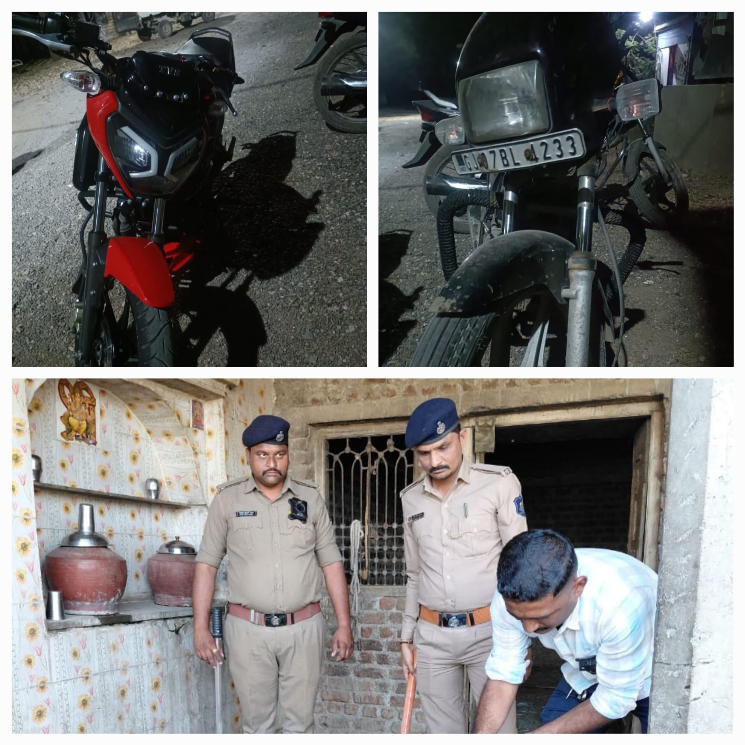(૫) કિશોરભાઇ ઇશુભાઇ ચારોલીયા ઉ.વ.૧૯ રહે.લાઠી મહાવીરનગર વાળાને ત્યાં તપાસ કરતા તેના રહેણાંક મકાનેથી ગે.કા. રીતે દેશી દારૂ બનાવવાનો આથો ૨૦૦ લીટર કેરબા સહિત કુલ કિ.રૂ.૫૪૦૦/-ના મુદામાલનો સ્થળ ઉપર નાશ કરવામા આવેલ છે અને મજકુર ઇસમ વિરૂધ્ધ લાઠી પોલીસ સ્ટેશન પ્રોહી.ગુ.ર.ન૧૧૧૯૩૦૩૪૨૫૦૦૭૦/૨૦૨૫ પ્રોહી કલમ ૬૫-F મુજબનો ગુનો રજી. કરવામાં આવેલ છે અને (૬) ભોળાભાઈ મેઘાભાઈ મેર ઉ.વ.૨૮ (ભરવાડ) રહે.લાઠી તા.લાઠી જી.અમરેલી વાળાને ત્યાં PGVCL લાઠીની ટીમ દ્વારા ચેક કરવામાં આવેલ છે.