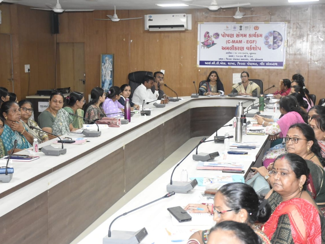 કાર્યક્રમમાં પોષણ સંગમ એપ્લિકેશન, મોડ્યુલર અને વાલી કાર્ડની માહિતી આપવામાં આવી હતી.