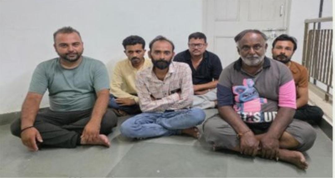 રાજકોટ શહેર તા.૧૧/૬/૨૦૨૫ ના રોજ આજરોજ તા.૧૧/૬/૨૦૨૫ ના સર્વેલન્સ સ્કોડના અધીકારી/કર્મચારીઓ પોલીસ સ્ટેશન વિસ્તારમાં પેટ્રોલીંગમાં હતા તે દરમ્યાન સર્વેલન્સ સ્કોડના અજયભાઇ વિક્રમા, મથુરદાન બાટી, ભાવેશભાઇ ગઢવી, જયદિપસિંહ ભટ્ટી નાઓને તેઓના ખાનગી બાતમીદાર મારફતે મળેલ ચોક્કસ હકીકત આધારે રાજકોટ ૧૫૦ ફુટ રીંગ રોડ આંબેડકરનગર શેરીનં.૫, “જય માતાજી” નામના મકાનમાં તીનપતીનો જુગાર રમતા આરોપીઓ વિરૂધ્ધ જુગાર ધારાનો ગણાપાત્ર કેસ શોધી કાઢી કાયદેસરની કાર્યવાહી કરવામાં આવેલ છે. (1) વાલજીભાઇ ભલાભાઈ ગોહેલ ઉ.૫૩ રહે.“જય માતાજી” મકાન આંબેડકરનગર શેરીનં.૫ રામદેવપીરના મંદીરથી આગળ, ૧૫૦ ફુટ રીંગ રોડ રાજકોટ. (2) દિલાવરભાઇ સલીમભાઇ મકરાણી ઉ.૩૩ રહે.-નવી ઘાંચીવાડ શેરીનં.૪, મુસ્તાકભાઈના મકાનમા ભાડેથી જીલ્લા ગાર્ડન ચોક પાસે રાજકોટ (3) કમલેશભાઇ ઉફે નાથો ઇશ્વરભાઈ નિમાવત ઉ.૩૫ મુળ રહે.વીનાયકનગર શેરીનં.૧૩ મહાકાળી મંદીરની બાજુમા મવડી પ્લોટ રાજકોટ (4) શોકતભાઇ હુશેનભાઇ કરગથરા ઉ.૩૮ રહે.નવી ઘાંચીવાડ શેરીનં.૬ જીલ્લા ગાર્ડન ચોક પાસે રાજકોટ (5) અલ્તાફભાઇ અબ્દુલભાઇ ગોગદા ઉ.૩૬ રહે.અંકુર સોસાયટી શેરીનં.૫, ભવાની ચોક, કોઠારીયા મેઇન રોડ રાજકોટ (6) હર્ષદભાઇ ઉર્ફે મહાજન માણેકલાલ માંડલીયા ઉ.૪૬ રહે.દેવપરા ભવાની ચોક અંકુર સોસાયટી શેરીનં.૨ “વાઘેશ્વરી કૃપા” અંકુર વાડીની બાજુમા કોઠારીયા રોડ રાજકોટ.