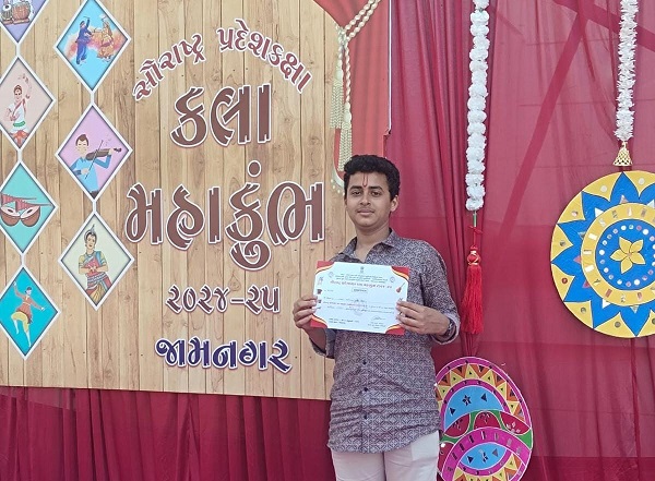 જામનગર મુકામે યોજાયેલ સૌરાષ્ટ્ર પ્રદેશ કક્ષાના કલા મહાકુંભ અંતર્ગત હાર્મોનિયમ વાદનની સ્પર્ધામાં માંગરોળની મલ્હાર સંગીત વિદ્યાલયના વિદ્યાર્થી કલાસાધક માધવ મુકુંદભાઈ તન્ના એ દ્વિતીય સ્થાન પ્રાપ્ત કરી રાજ્યકક્ષા ની સ્પર્ધા માટે ક્વોલીફાઈ થઈ કલાગુરુ શ્રી સુનિલભાઈ કાચા તેમજ પિતા મુકુંદભાઈ તન્ના નું નામ રોશન કરી માંગરોળને ગૌરવવંતું સ્થાન અપાવવા બદલ ખુબ ખુબ અભિનંદન