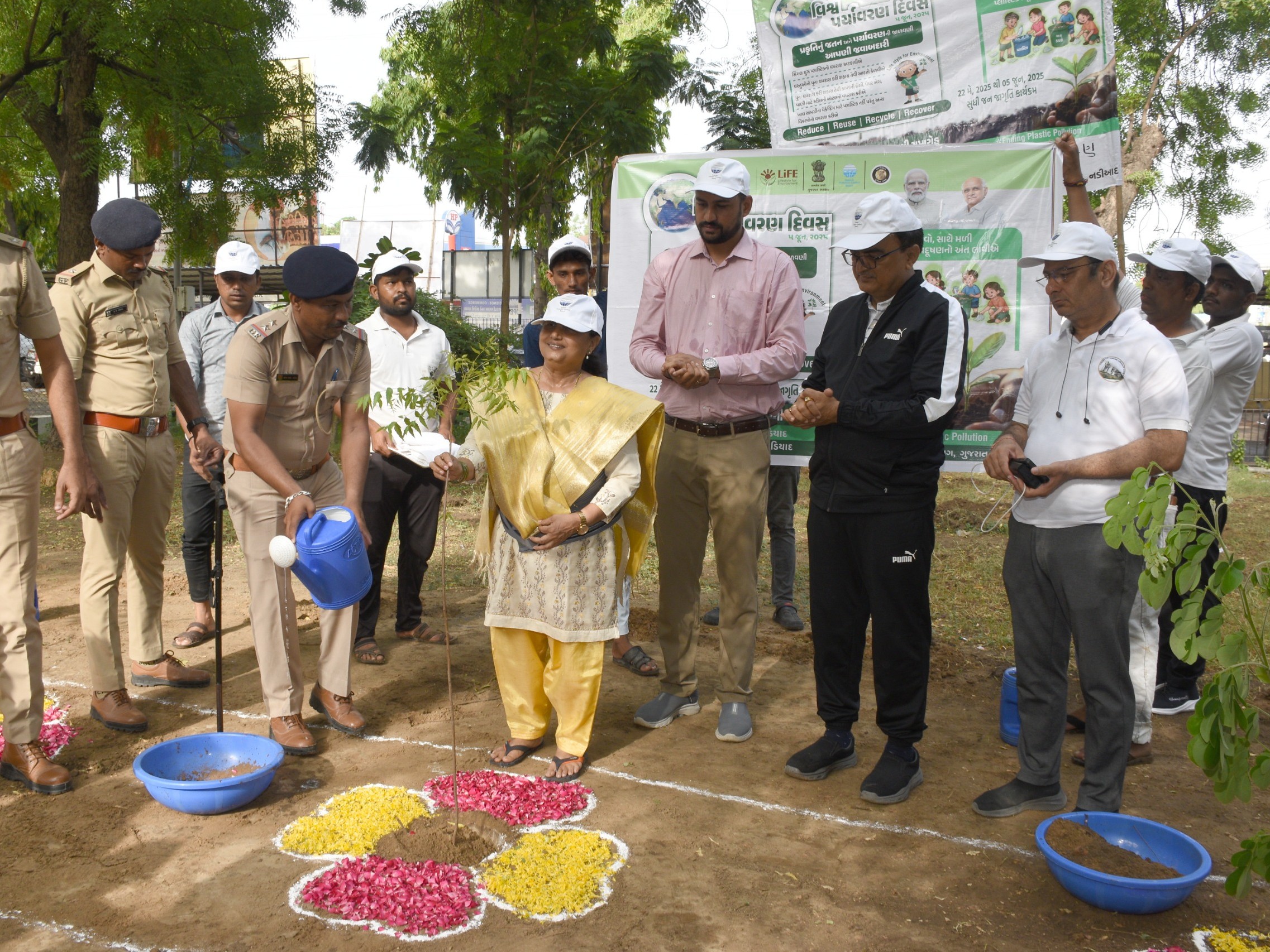સરદાર ભવનના બાગમાં વૃક્ષારોપણ કરવામાં આવ્યું હતું. સાથે પ્લાસ્ટિક વપરાશ પર અંકુશ અને પર્યાવરણ જતન માટે પ્રતિજ્ઞા લેવામાં આવી હતી.
