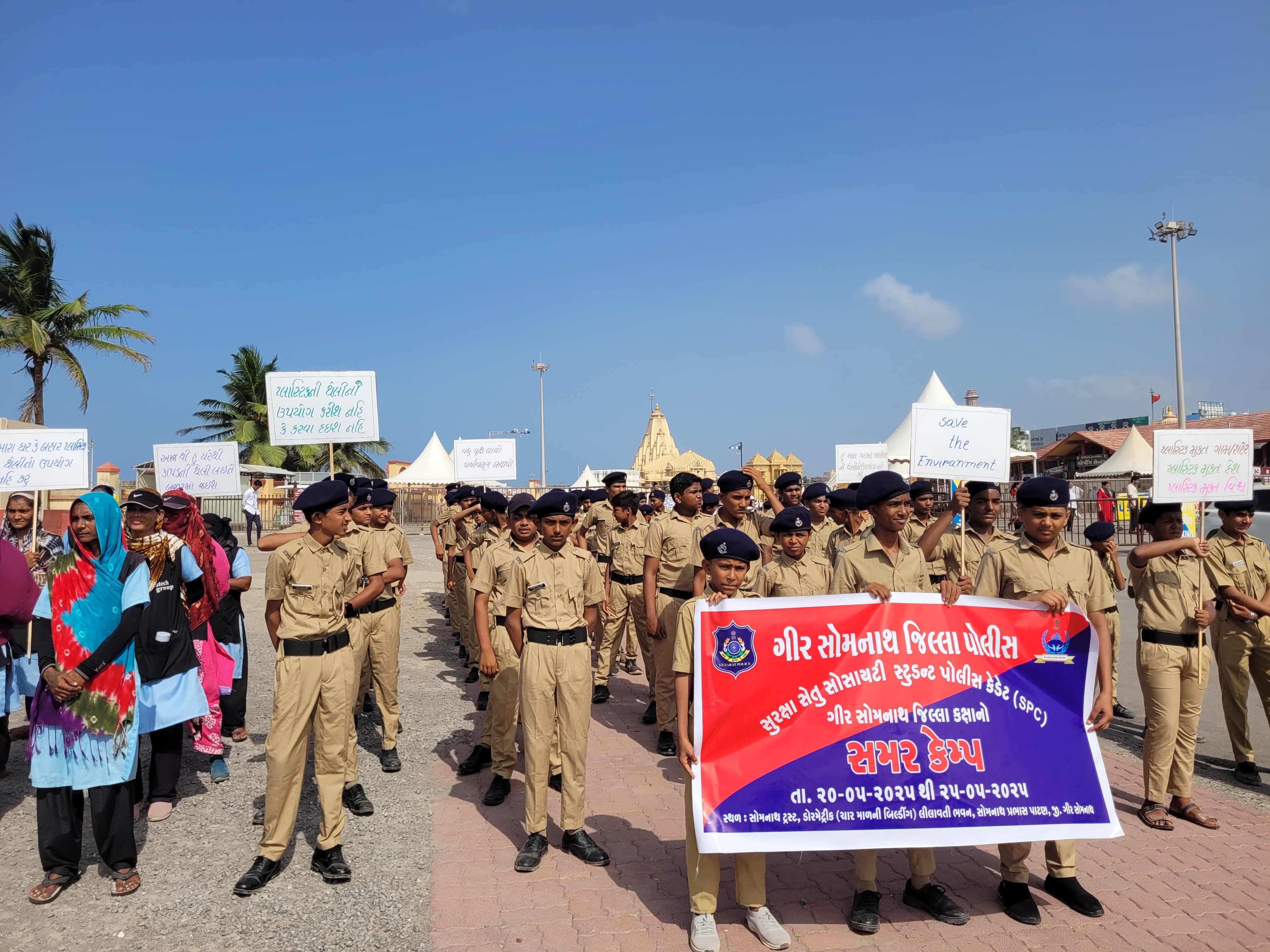 સુરક્ષા સેતુ સોસાયટી સ્ટૂડન્ટ પોલીસ કેડેટ સમર કેમ્પના કેડેટ્સ અને સોમનાથ ટ્રસ્ટના સફાઈ કર્મચારીઓએ સંયુક્ત પ્રયાસ શરૂ કર્યો છે.