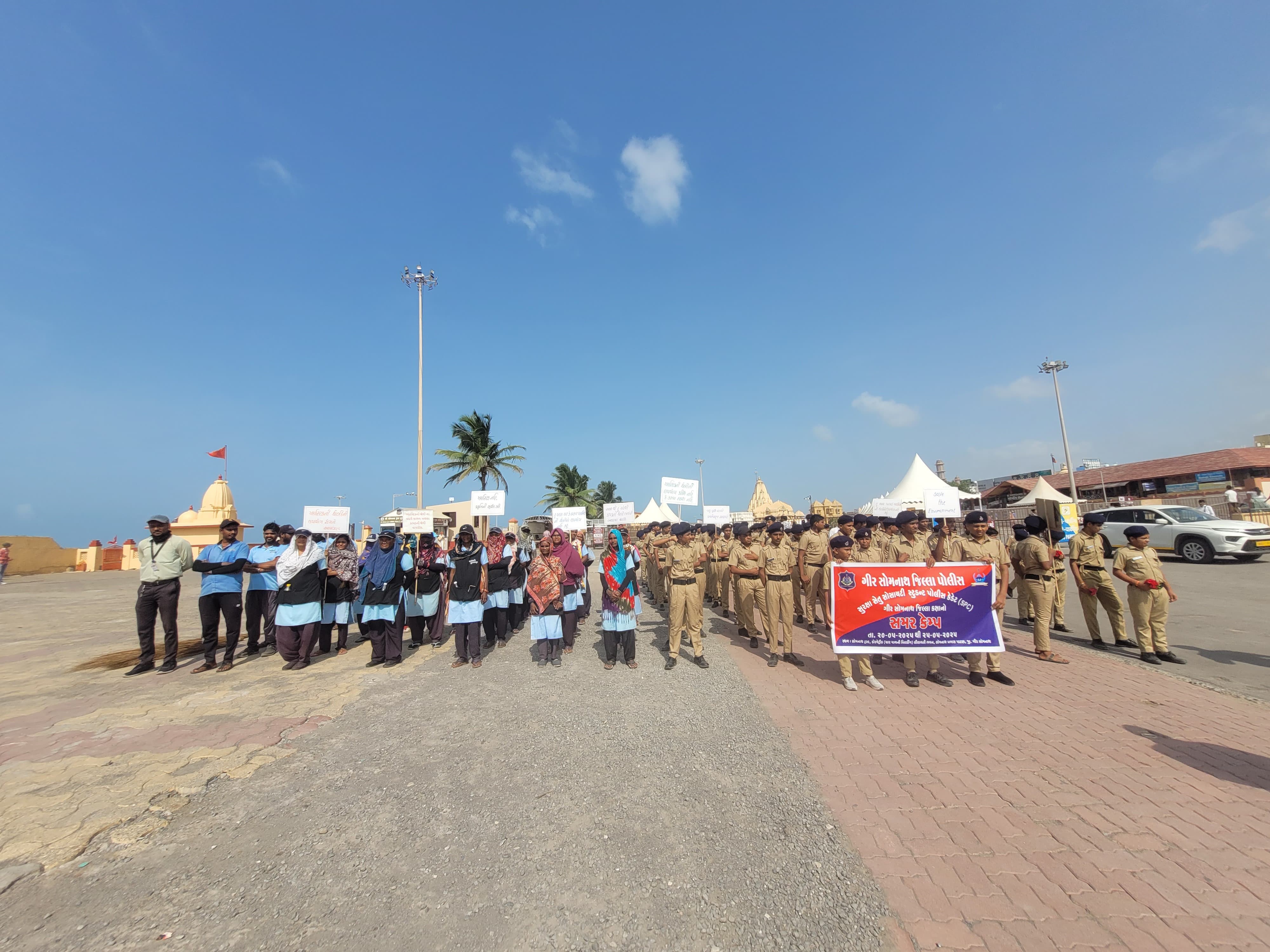કેડેટ્સ અને સફાઈ કર્મચારીઓએ રેલી યોજી પ્લાસ્ટિક એકત્રીકરણ કર્યું. તેમનો મુખ્ય ઉદ્દેશ સોમનાથ સહિતના ધાર્મિક સ્થળોને પ્લાસ્ટિક મુક્ત યાત્રાધામ બનાવવાનો છે.