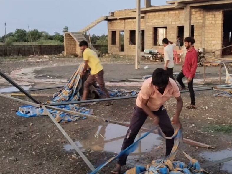 ગઈકાલે સાંજના સમયે અચાનક ભારે પવન સાથે વરસાદ તૂટી પડ્યો હતો. મીની વાવાઝોડા જેવી સ્થિતિએ લગ્ન મંડપ અને સમિયાણાને ધરાશાયી કરી દીધા હતા. આ ઘટનામાં બંને દીકરીઓનો વિદાય પ્રસંગ પણ યોગ્ય રીતે ઉજવી શકાયો નહીં.