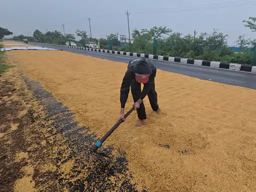 છેલ્લા 15-20 દિવસથી ખેડૂતો રોડ પર જ છે. વરસાદના કારણે રોડ પર પાણી ભરાતા ડાંગર તણાઈને કોતરમાં જઈ રહ્યો છે.