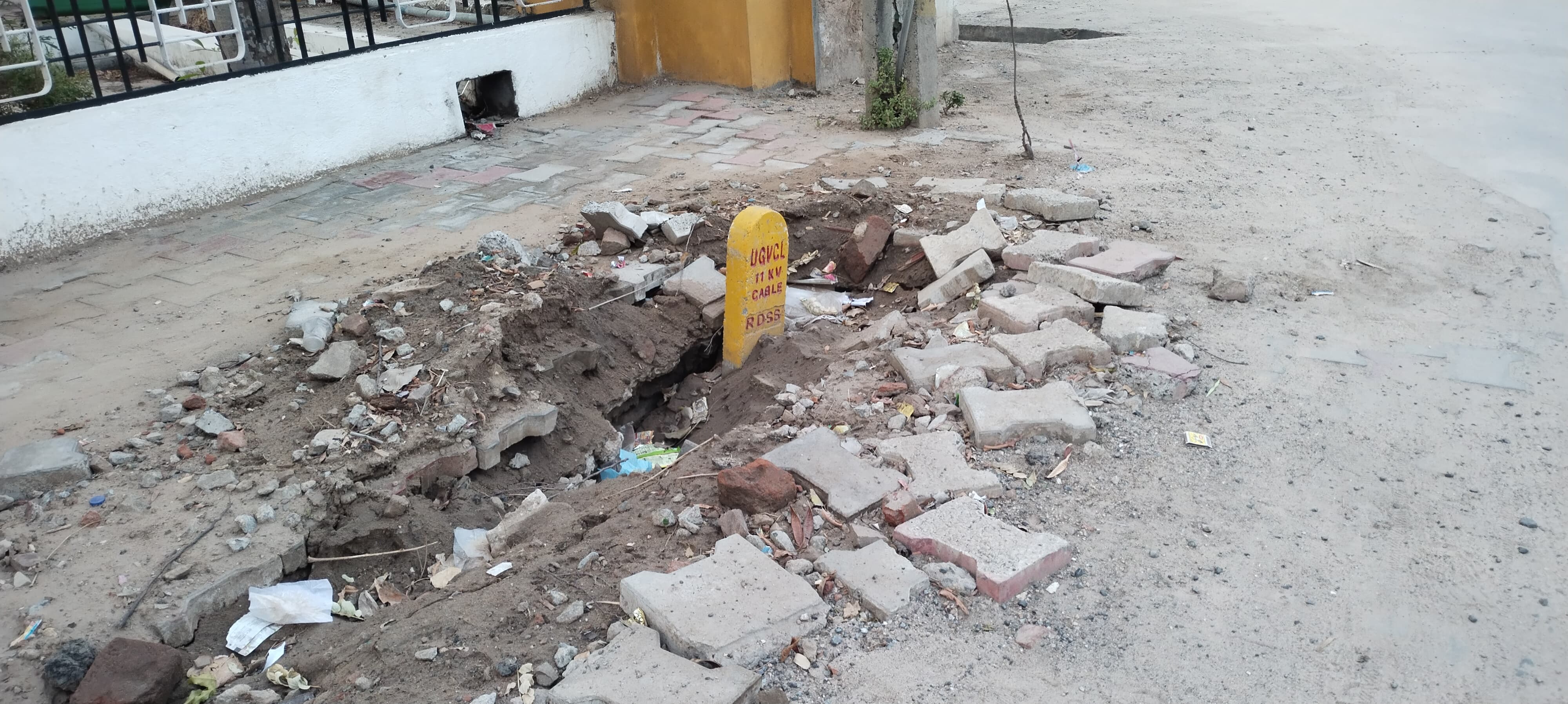 શહેરમાં યુજીવીસીએલ દ્વારા 11 કેવી વીજ લાઇનના અંડર ગ્રાઉન્ડ કેબલ નખાયા પછી તેના દિશાસૂચક રૂટ માર્ક રોડ સાઇડ ખાડા કરીને લગાવાયાં છે. પણ આ ખાડા હજુ પૂરાયા નથી. વરસાદનું પાણી ઉતરતાં આ ખાડા ભૂવામાં ફેરવાઇ શકે છે.